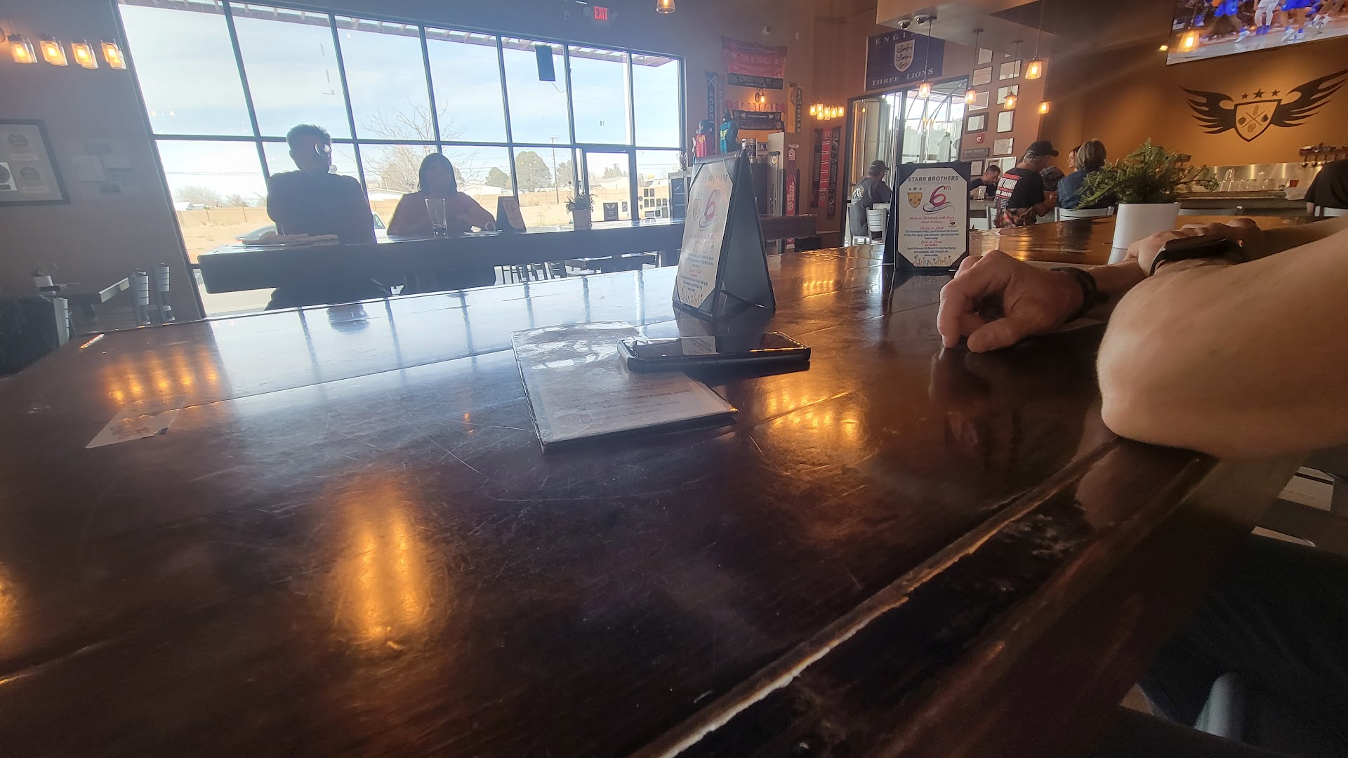 I give this place a solid 3 stars. One star for having waitresses and waiters that try their best to provide decent service. One star for the environment. They have a great patio and have the best energy and love for local soccer teams. You just have to show up early to get a seat because it becomes standing room only very quickly during watch parties. The third star ties into the environment. The companies support for the soccer scene is unmatched by any other brewery or bar in New Mexico.
