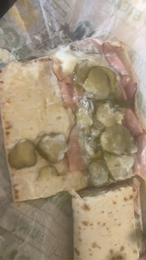 Read moreWe came in to order 5 sandwiches and the manager said "only 5 sandwiches are allowed for one ticket" which we understood, then he proceeded to "just tell us" in an annoyed tone. They started making the first sandwich, and we asked for some extra pickles. Then the lady took 2 large handfuls and packed them all on the sandwich as seen in the photo. She also added WAY too much of both sauces, the bread was soaked. We stated what we wanted but the lady kept asking if we wanted to add other things, we proceeded to say no over and over again. The lady had a huge attitude and even put the wrong sauce on my sandwich and proceeded to say "well it tastes good so." It was horrible customer service, and I even saw the manager smoking right outside the shop. There was one employee (cashier) that was very kind! We talked and had a fun conversation, but the 2 other employees seemed very passive aggressive. While we were ordering, a lady kept asking for the bathroom code and the manager got frustrated and said something along the lines of "i already gave you the...
