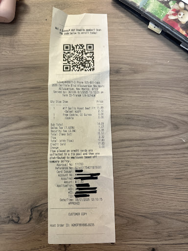 Read moreI went to this location yesterday, a family of 5. 2 small kids, my older daughter, my disabled mom and myself. We went in after visiting my cousin at the hospital. Went in and as I was standing in line to order, my mom needed to use the bathroom, they had keypad locks on the door so we asked for the code. The manager RUDELY said that we would NOT use HER bathroom until we bought something. I said I’m staying right here to order sandwiches. She insisted that we PAY first before using HER bathroom. My disabled mom had to wait until I ordered everyone’s sandwich before she could use the bathroom. Then I asked for extra olives on one of the sandwiches and they rudely said it would be extra. I felt so bad for telling her that the middle of our pizzas were cold because as soon as a did she tossed them in the trash and yelled at the girl that made them. I’ve also never been to a subway that charged extra for olives. During the rest of the visit all we could hear is the manager yelling at the employees about different things. It’s an overall bad experience and probably won’t go...