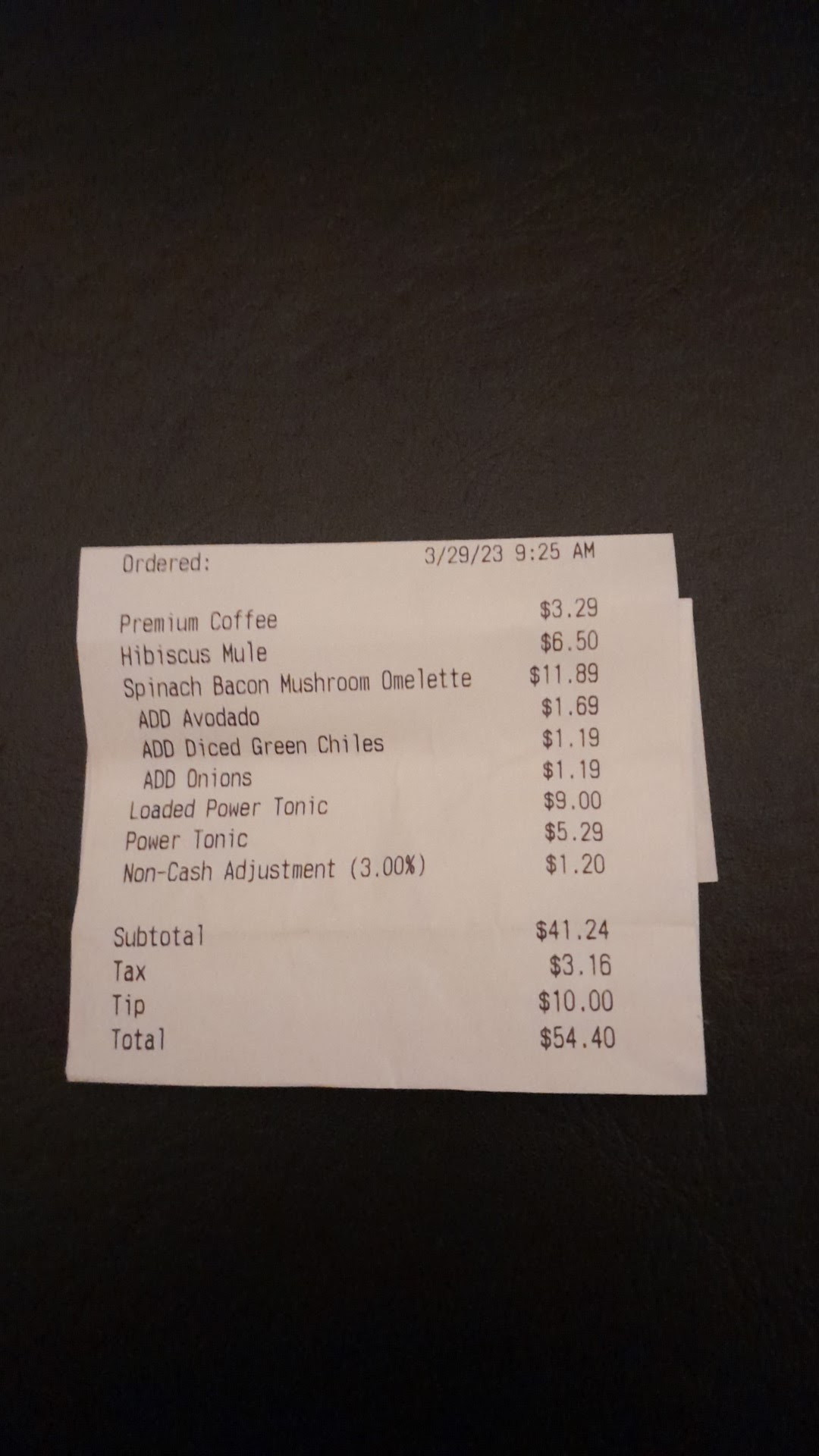 The Hibiscus mule was tasty and refreshing. I appreciate the light hand late in the morning VS a fratty heavy hand I've experienced elsewhere. With families around on a week day, it was a safe choice. Could have done without the brand name on the copper mug. But, still worth it.