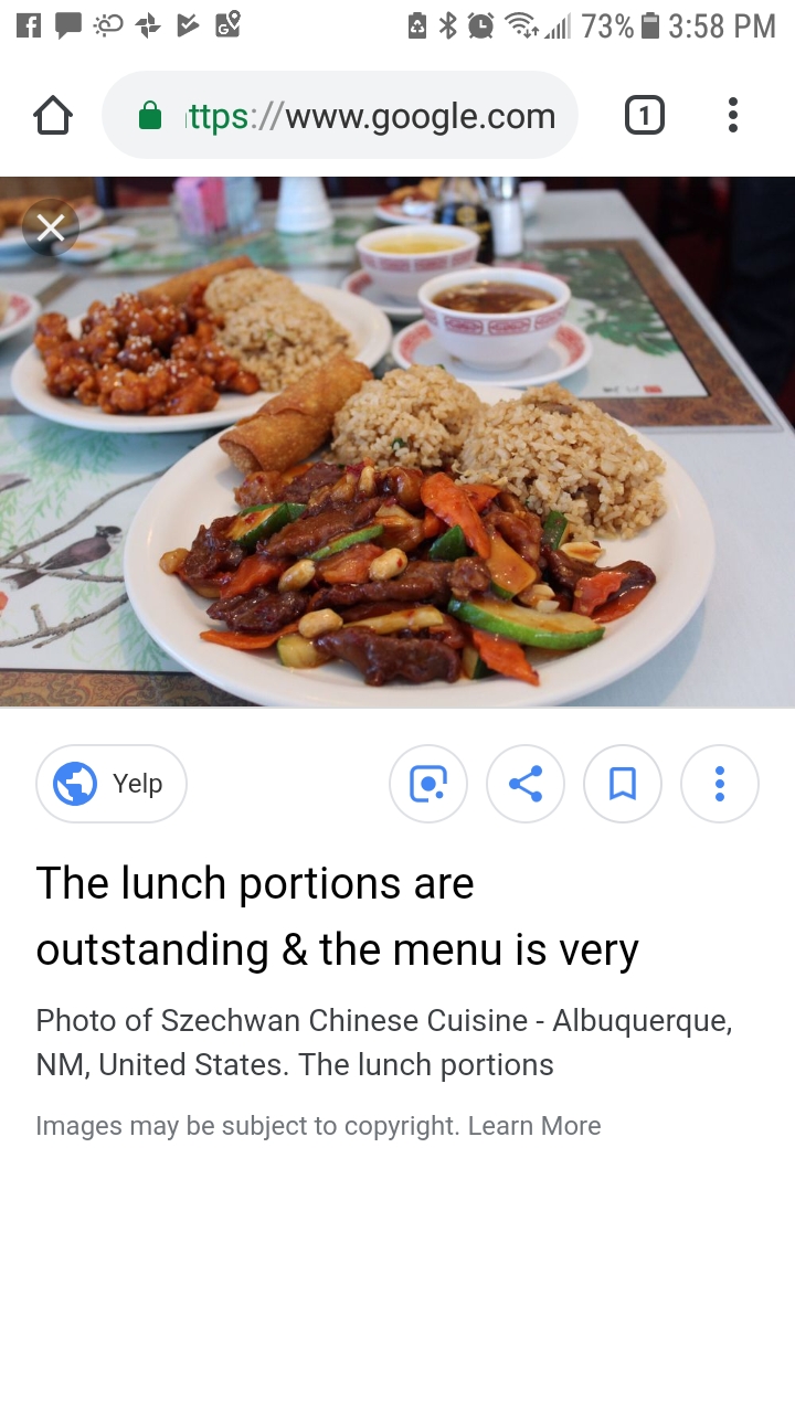 A choice Chinese Restaurant! My wife and I ventured out for a quick lunch but we were not in agreement on what we wanted, enter Chinese cuisine! Such a wide variety of preparation! We were in the neighborhood so Szechwan Chinese it was!
