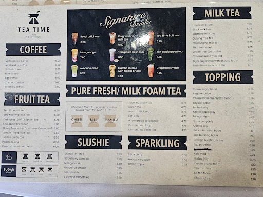 Read moreI ordered two drinks, a fruit tea and a milk tea. And I have to say, they are very bad, especially for the price. I went three times to this place and everytime their sugar level is inconsistent. I orded 50% sugar every time, but the first two was overwhelmingly sweet as if it was 120% sugar. I gave it another chance the third time, ordered 50% as usual and the drink this time was bland with 0% sugar. Moreover, I think the pricing is just way to expensive for boba, almost $9 more a cup...for bad boba 😔 I have given tea time so many chances but I was met with disappointment...