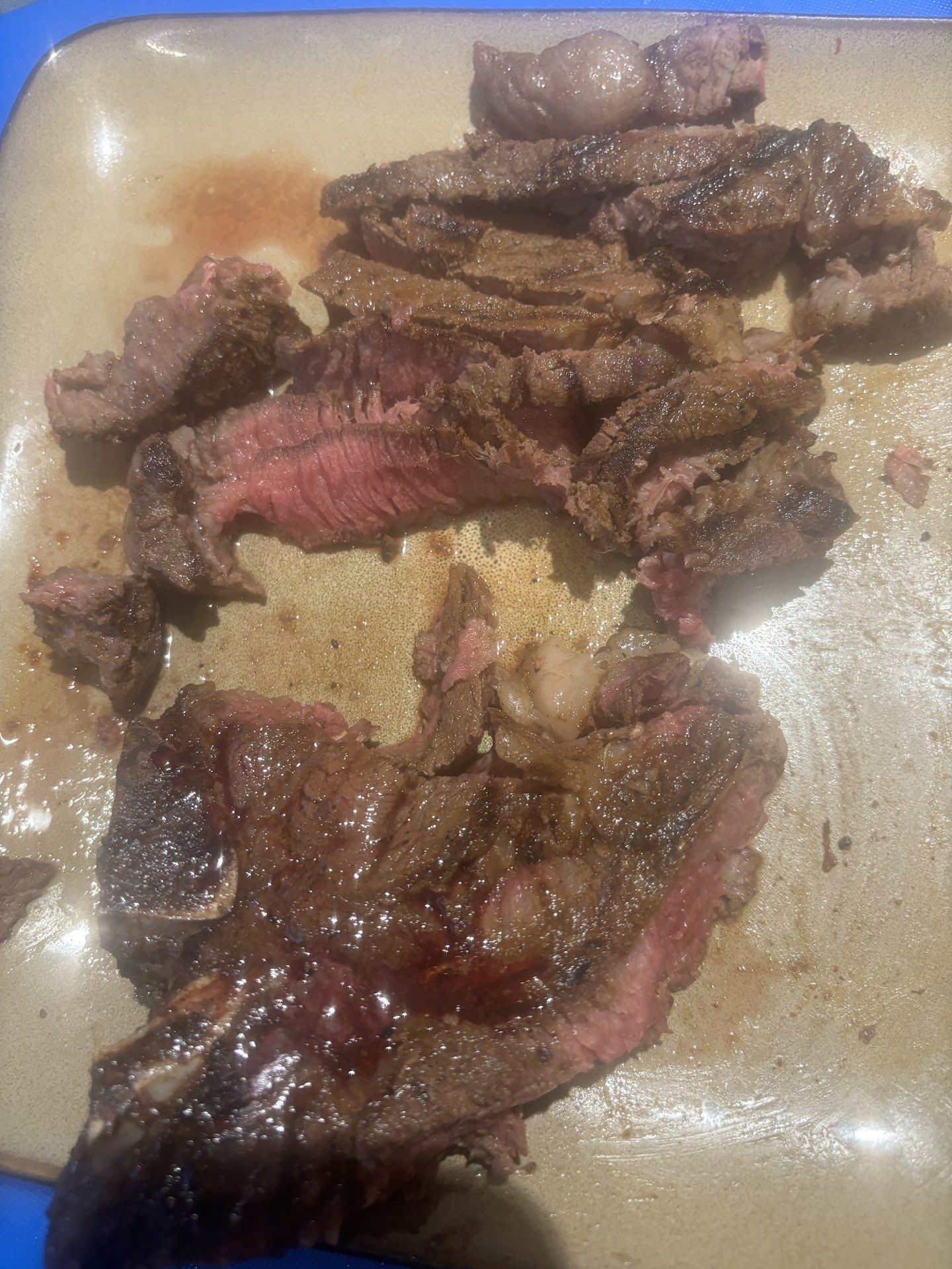 The first two pictures are the steak when I got home. I even tried to microwave it and more blood kept coming out of it. The second picture is when they told me it was medium well and I had to saw through the steak. it was tough to cut into the steak as a grown-up. You can clearly see that that steak is well done and dry as it wants to be.