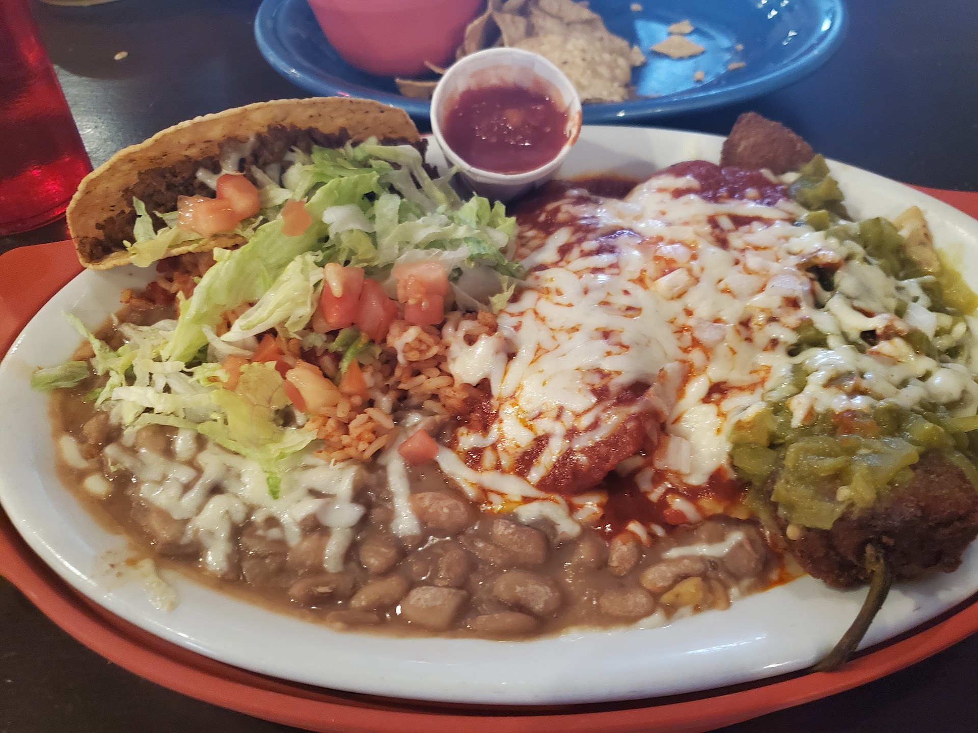 Read moreI'm sorry but this place is nothing what I expected... first we sat down and waited several minutes before someone took our drink order. Not a big deal but hey I think this should be done very quickly. Our waitress was actually nice and we ordered an appetizer of chips and queso while we waited for our meals. The queso was luke warm!?!? It was still actually good so I didn't make a funk about it. Then came our food which was immediately after our chips and queso, since we ordered our drinks, appetizer and meal all at the same time. So we left the chips and queso alone and went to dig into our meals. The presentation looked great and I could not wait to try this place that everyone was so hyped up about coming to Albuquerque. The food was bland. Period. The tamale was dry and just straight up bland. The enchilada was bland. The chili reneo was just off, a weird breading and weird texture to it, and once again bland. The rice tasted like tomato sauce and that's it. The beans were even bland. The taco had alot of meat and tasted exactly like hamburger meat with the season packet you buy at the store. Nothing special to it all. And no cheddar cheese on a taco? 16$ and some change for the super combination plate... It's been a while since I have left my plate with food on it and this was one of those days. I literally took one bite of everything and just left it. The waitress could tell something was wrong wrong when she walked up and my plate was shoved to the end of the table. I explained that it was just off, and I couldn't exactly explain it but it just straight up sucked. A few minutes of watching my better half pick at her plate unhappily, and me trying to fill up on the sopailla and honey,, a women walked up who I am guessing was the manager. She said she heard I was not happy with the food and wanted details. I explained that this had zero pop, there was nothing to the food and definitely not worth the $16+dollars for what they were serving. I also pointed out that the queso was luke warn. She didn't like when I said I would 100% would have rather gone to Taco cabana for lunch, she literally walked away from the table. The waitress (who is the only reason I am giving 2 stars instead of 1) removed my meal from the ticket which was nice but a little too late. When we were walking out the manager was at the front door and refused to even make a kind gesture to please give them another chance. She just ignored us lol.