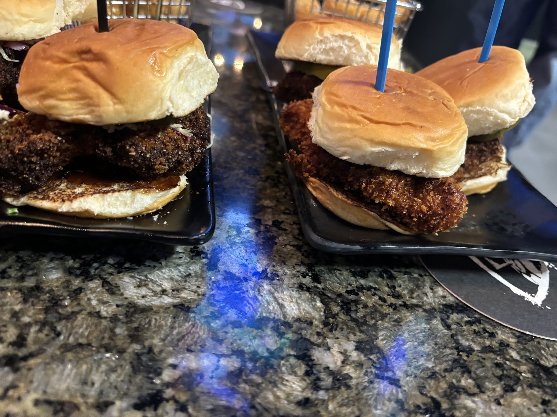 My family and I usually come here once every 3 weeks, because it’s expensive! It is totally worth it though, because there is nothing like it in Albuquerque and it’s great family time! However, tonight the food was terrible. I am telling myself they hired some new cook who was still learning the menu! My complaint isn’t more so the food, it was the manager that came over after our sever confirmed our sliders looked burnt. One manger named Jakob Croft, came by and said he would have it sent back, then before not even 6 minutes later, the burnt sliders were reserved to me, and another lady whom claimed to be “leadership” said the reason they are that dark is because of the seasoning and for safety reasons had to be cooked to a certain temperature! CLEARLY I understand you have to cook chicken to a certain temp, but we just order the same dish 3 weeks ago, which looked and tasted completely different! I would have understood that the kitchen is busy, or we have a new chef, but to come and lie to our entire table like we’re morons is what made this entire experience unacceptable! Two pictures of the exact same dish and what our previous order from 3 weeks ago was. Top golf is not cheap, we spend about $300 every time we go! Managers need to have better training on what acceptable food is, and provide better customer service. What a disappointment!