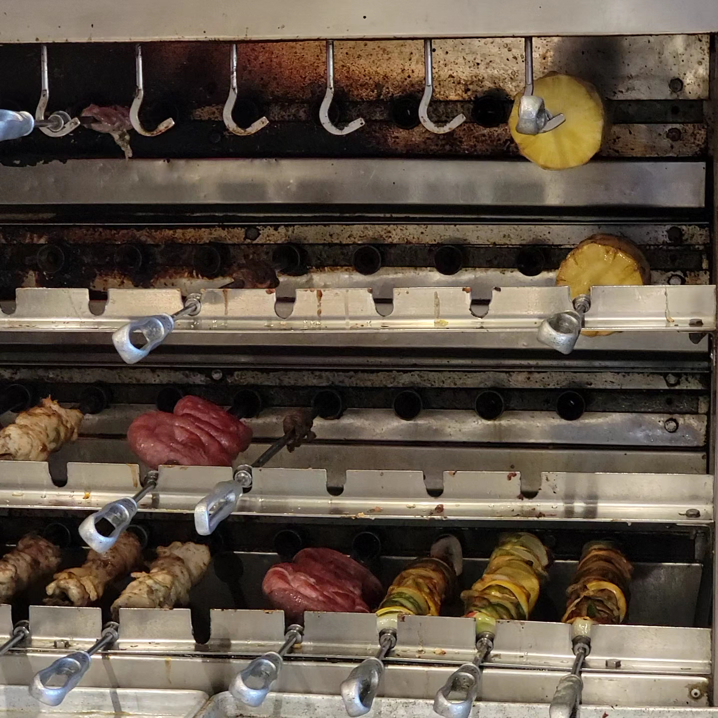 Been coming here for almost 20 years. This has been one of our go to places for a special occasion, haven't been here in about a year or so and today we went for our anniversary, for lunch with our children and left with that feeling of disappointment and overall LACKING. The older gentleman who is a "host/greeter" was super NOT friendly. When I walked up to be seated he just hind off have me a look like "yes? How many" without saying anything at all. I'm not sure if it was due to that medical thing around his throat, possibly a trach thing or what but if that's your job then he needs something where he shouldn't be in charge of something that requires greeting and talking. We went around 1:30 pm ish for lunch, waitress was friendly. The selection of the salad bar was bla, I know it's Brazilian but maybe research other options besides those currently have on the salad side that still stay within the culture. The back side of the salad bar has different types of mixed salads, nothing looked appetizing and didn't get anything from that section. The hot side, i did get some mashed potatoes and some mixed veggies but that's it. They used to have there deciduous pinto beans with these pieces of ham, oh my gosh.... but not today. And usually they have a good hearty soup/stew. Meat selection was ok, personally I don't care for beef that is really really red still or bloody, but my husband and son did. The sweet and spicy chicken was just as good as always. Pineapple always good. Dinner usually has more options and thinking I should have gone for dinner instead but wanted to get home early. But the overall feeling at the end I really don't want to pay that premium price for dinner for the same disappointment, idk we will see. Meat servers were very good as always. I didn't want more chicken than I already had, i don't care for the beef choices they offer, and same for the fish. I felt bored and lacking, so went back up to look on the entire salad bar, thinking maybe some fresh fruit , they had a sad little bowl of melon which I'm allergic to so couldn't have that. I walked around the whole thing and nothing else caught my eye to seem to try to satisfy. HERE'S MY HUGE PART... that left me just bla. I had to go to the bathroom, and I know there was a recent "remodel" only thing I seen different was the carpet,... anyway walking to the bathroom and the hallway leading to is pretty gross. The baseboards have that black gunk at the bottom and the doors are dirty and scuffed. The actual woman's bathroom was horrible, there was either poop or something brown on the floor near the toilet, something that had been recently cleaned and you could see the cleanup staining, the toilet didn't flush properly, I tried 4 times. The floors in the entire bathroom were disgusting not to mention the walls. For this place just having a "remodel" nothing in this bathroom has been changed since I've been coming here, and even so you could at least keep it clean. You can clearly see it hasn't been cleaned in quite some time. I was left very grossed out and not in a position where I want to eat after, eeewww. HERE'S THE THING, this has always been a upscale place to eat, I mean the price is shouldn't the entire experience be also?? Yes the salad with ranch and crutons was good, yes my 2 peices of chicken were good, yes pineapple was good. But, the bathrooms were like those of McDonald's or worse, and with a experience of lacking, where you have that feeling like, I want something that will really just hit the spot and couldn't find anything, and then that whole nasty hallway and bathroom part. I was done. Spending $130 for lunch alone for 5 people is alot, and for that premium price you want more bang for your buck, a clean environment, wonderful service from the time you come in to the time you leave, that host guy was sitting down on his phone when we left, didn't say a word to us. Who ever the GM of that place is should be ashamed! Get your...
