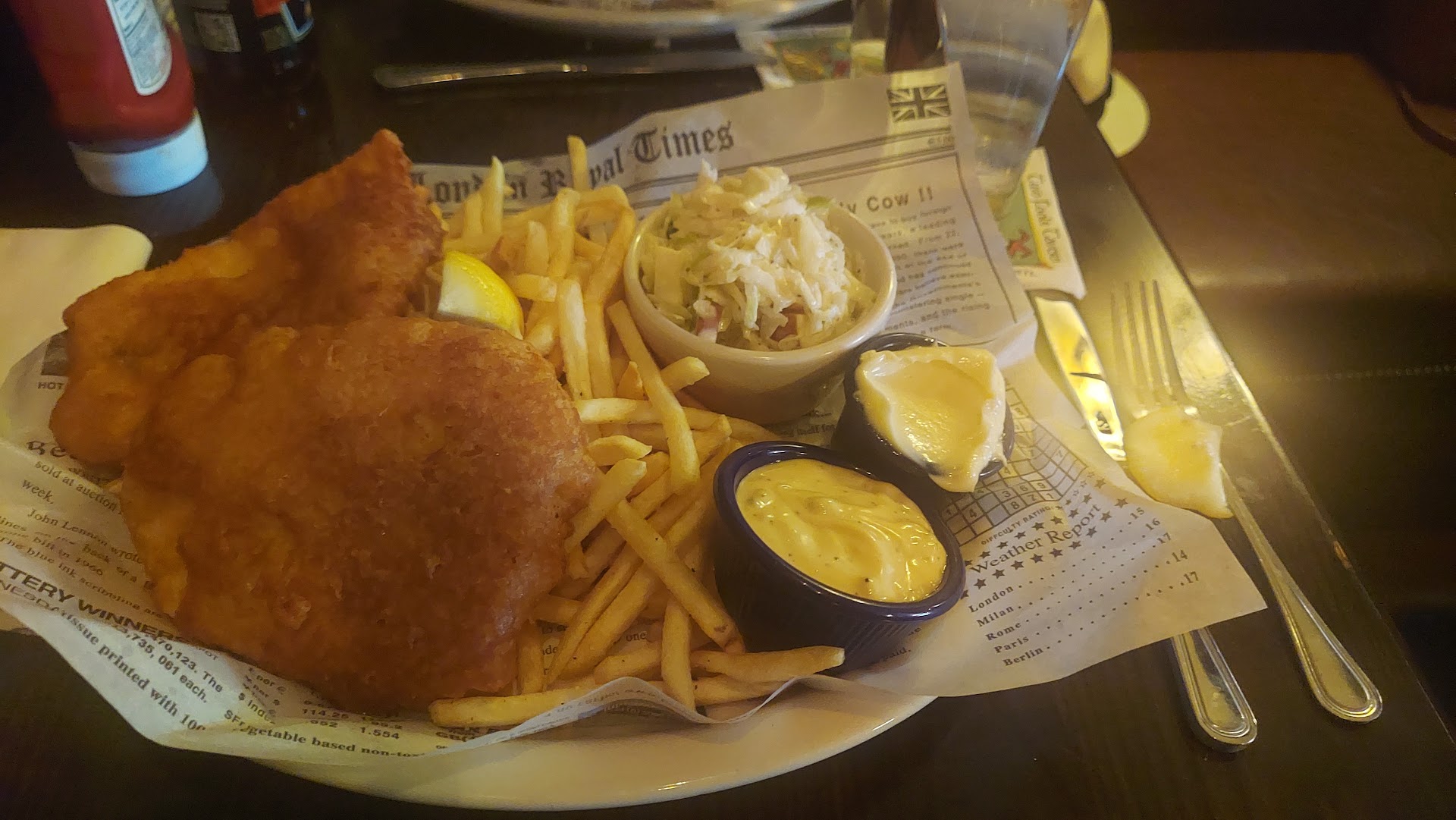 Read moreI enjoyed my visit here. I was looking forward to some Irish pub food and I've heard this is the place. Being carded at the door was a little weird/scary because I thought the lady was going to tell us no kids (brought my teen son) but I guess that's how they roll here and we were allowed in. Thrilled to find out they had Guinness Zero here! I don't drink alcohol but miss Guinness & it was terrific! We ordered a Pub Burger, Fish & Chips and both were excellent--fries went a little limp but the teen ate em' up just the same. I regret not asking for hot sauce for the cole slaw which was fine, it just needed some pep! Bread pudding was a little dry on the outside but moist and tasty in the middle--definitely sharing size! The atmosphere was a bit loud because of the acoustics but it wasn't particularly busy--just us and maybe three other tables & a handful at the bar. Music was good--90's stuff was on and some Irish style tunes--so glad it wasn't country lol. We were there 3pm the day before St. Patty's to try and avoid the inevitable chaos. Parking is non existent so you must find places a block down the streets surrounding or at meters if available. Staff was busy but friendly. Our waitress (Haley--blonde gal) was friendly and accommodating. I hope to come here again someday as it was a nice diversion from the usual ABQ stuff. Great food, about $30 a person here though. Definitely recommended for some tasty...