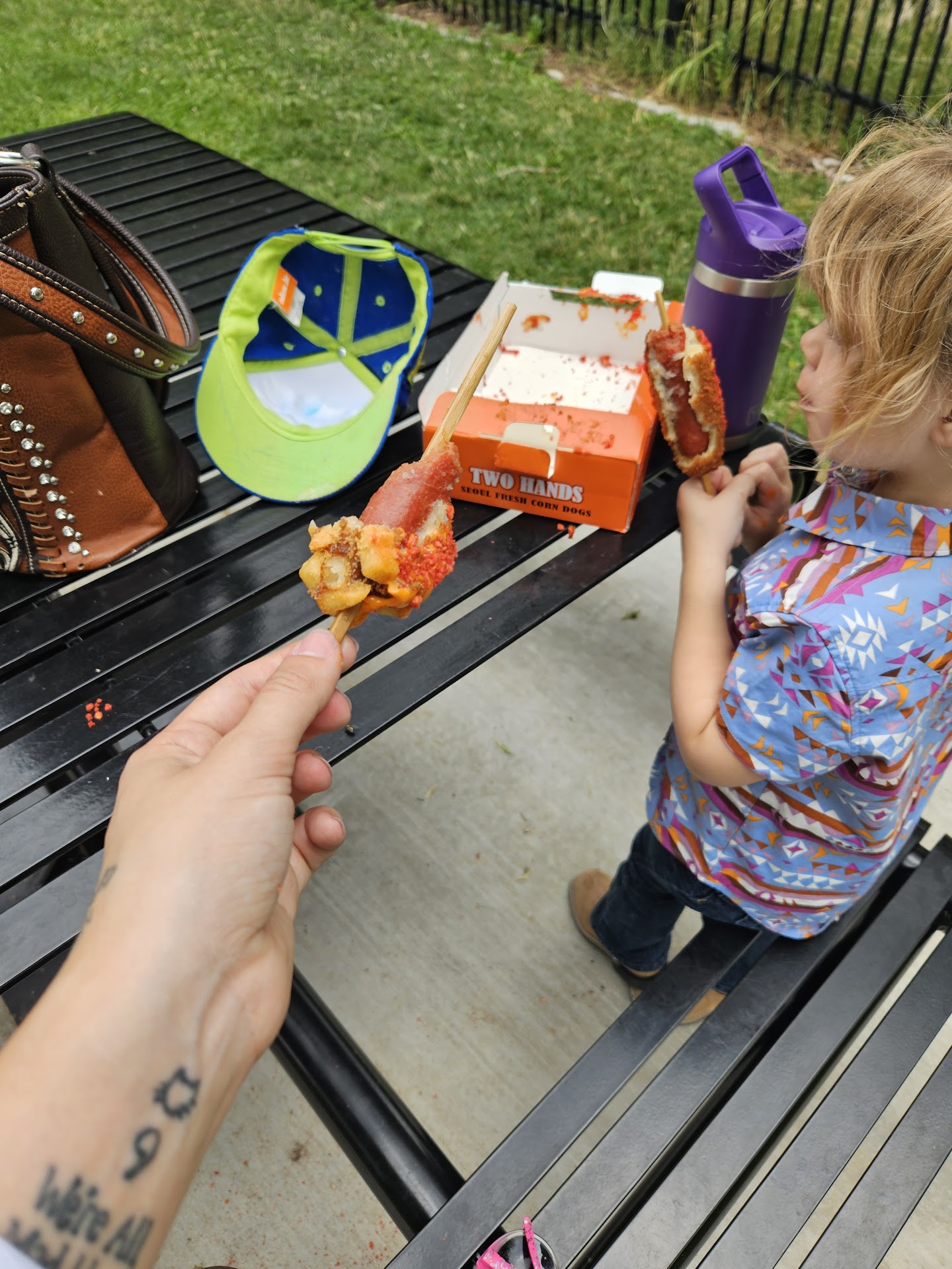 THE GOOD 👍 The flavors are there: American corndogs with a bit of Eastern Asian fusion flare. Kimchi seasoned fries were very tasty & had satisfying texture. Rolling a "corn"dog in panko after the batter is definitely a superior method. It yields exactly what you would expect from a panko fry... crispy crunchy exterior. The Potato Dog is clearly a god-tier concept for a corndog, hands down. BUT...