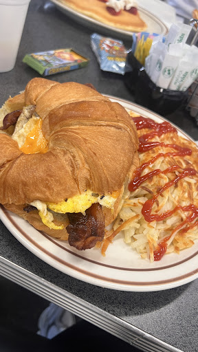 I ordered a fruit cup and two eggs poached medium. The fruit cup had pineapple in it. Yay! Right? No. The pineapple was WHTE and flavorless. Why bother putting it in if its not ripe or at least the correct color? They cannot poach.a medium egg to save their lives. Sent the eggs back to have them give it another shot. Took forever and our waitress avoided us, wouldn't refill my husbands coffee or bring us the napkins we requested while the eggs were being cooked again. Annoying! The floor manager sails by "asking us how our meal was" and did not wait for an answer. So why bother? Finally the second try on medium poached eggs arrived and they were again...runny. But my husband got his coffee refill. Waitress asked it I would like to send them back again but at that point I just wanted to eat something besides white pineapple. Manager came over and assured me they could cook 2 more eggs for me, but come on. My husbands waffles were great and so was his side of bacon. When we went to pay, it turned out the waitress gave us the wrong ticket. So we had to wait to get that straightened out before we could pay and leave.