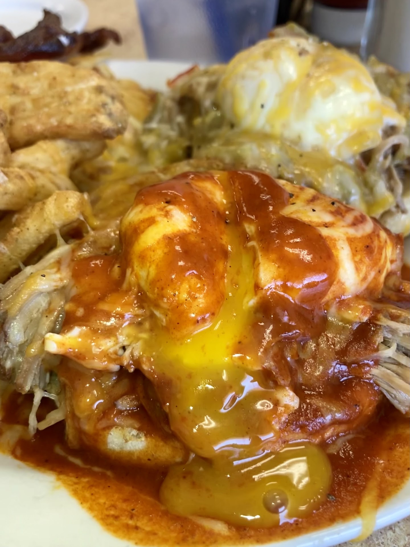 Full Belly Tradition... It speaks for itself. I stuffed my face it was Soo good! I got the Bananas Foster and honestly it looked like it came rite out of the TV commercials where you see the food is all perfect and nicely arranged then you go and order it and it looks nothing like it.... Well that's NOT an issue here. The portions are huge and the taste is even better. The green Chile is hotter then the red if you don't want spicy stick with the red other wise the Green Chile is definitely the way to go! The service was great the nice women and men who wait on you are top notch! 20% tip is what I left and on my opinion well worth the Gratuity! I got the Butter Pecan Coffee to drink and dang it was very enjoyable especially since I got a good size 12 oz cup to bring home with me... Food great, service Double great and the atmosphere and the other patrons we're all a great experience. If you go in tell them that I sent you... The...