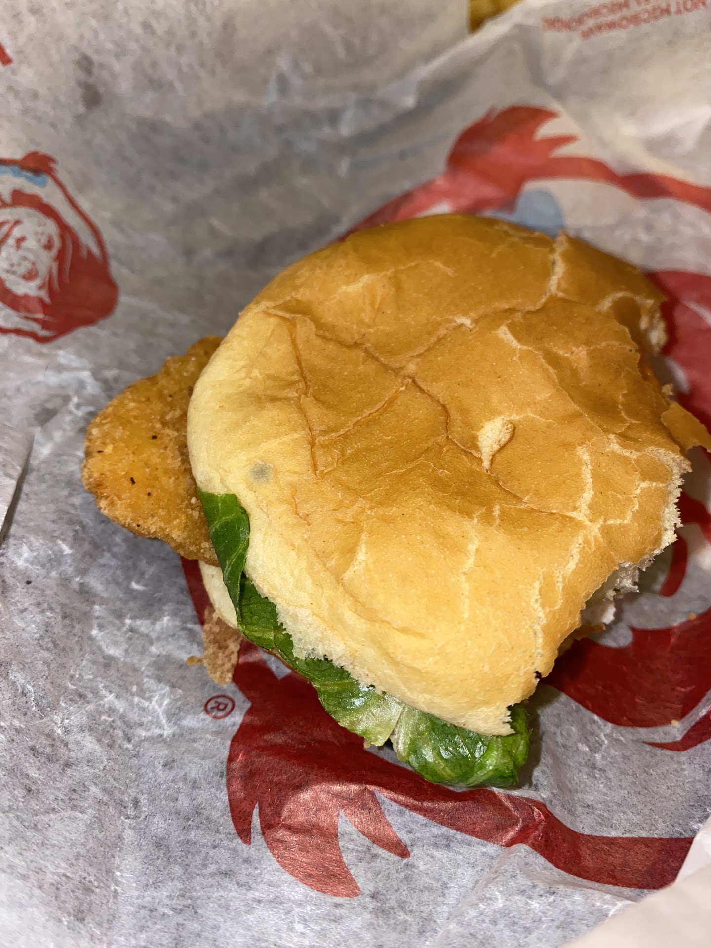 I just got a couple chicken sandwiches from this location and we noticed one of the sandwich buns had mold. I had already finished my chicken sandwich before my partner noticed the mold on hers. I brought it back expecting my meal to be comped but instead they insisted I get a different sandwich made. I told the lady at the window I’m not going to eat there anymore because it doesn’t seem safe, multiple times. She continued to say they don’t do refunds so I finally replied can I talk to a higher up or a manager. That’s when she asked to see my sandwich and receipt. After a few moments passed she stuck her hand out the window with two single dollar bills and my original receipt and said”here’s the refund for the crispy sandwich” I tried explaining that I feel like I probably ate mold and want a full refund. She insisted my sandwich didn’t have mold and explained that there were only mold on the small sandwich buns because those ones are in the sun, and that they thought they got rid of all the buns that had mold but they missed one. I was extremely disappointed with how they handled their mistake. I will definitely never eat here again and make sure everyone i know is aware of the mold...