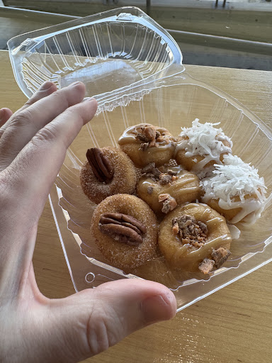 Read moreThis place is AMAZING! đâ¤đ Our donuts were made fresh on the spot! I saw the batter get mixed, I watched them cook up perfect tiny scrumptious golden mini donuts two by two and then each one was hand glazed and topped perfectly with the various glazes and toppings we picked. They were so beautiful just to look at but the real magic is when you pop them in your mouth still warm and they melt in your mouth. MmmmmmmM! Plus the vibe was so peaceful and light. This has been without a doubt my most pleasant and satisfying food experience in all of...