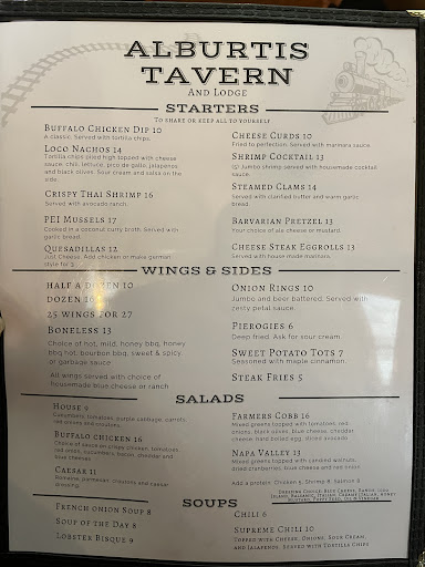 Ā Ā Ā Read moreAre used to go to the Alburtis tavern for years prior to it closing down to the pandemic. Stopped in tonight since I heard they had new management and weāre open again so I wonāt be too overly critical because I know there is a learning curve with all new employees, but Iāll be coming back here more often. Anyway, I stopped in today said at the bar the place was absolutely packed which was good to see. I just ordered a sandwich called the Cuban and the Coca-Cola. The food came out about 30 minutes later, but like I mentioned, the place is very crowded so take that into consideration and new employees. The Cuban sandwich is supposed to have ham and pork on it, it was served on a ciabatta roll, but did not have any pork. Either way the atmosphere was really awesome. It was nice to sit at the bar and talk to some of the local town folk who are used to also come here. In my opinion, if you were looking for a place to go eat, I would definitely check this place out because in the next coming weeks as they get into the groove, Iām sure they are going to be just as amazing if not better than what they were before. One of the cool features that they have is if youāre sitting at the bar all the barstools have a railroad name on them and every time a train goes by they spend this big roulette type of wheel, and if it lands on your seat name you...