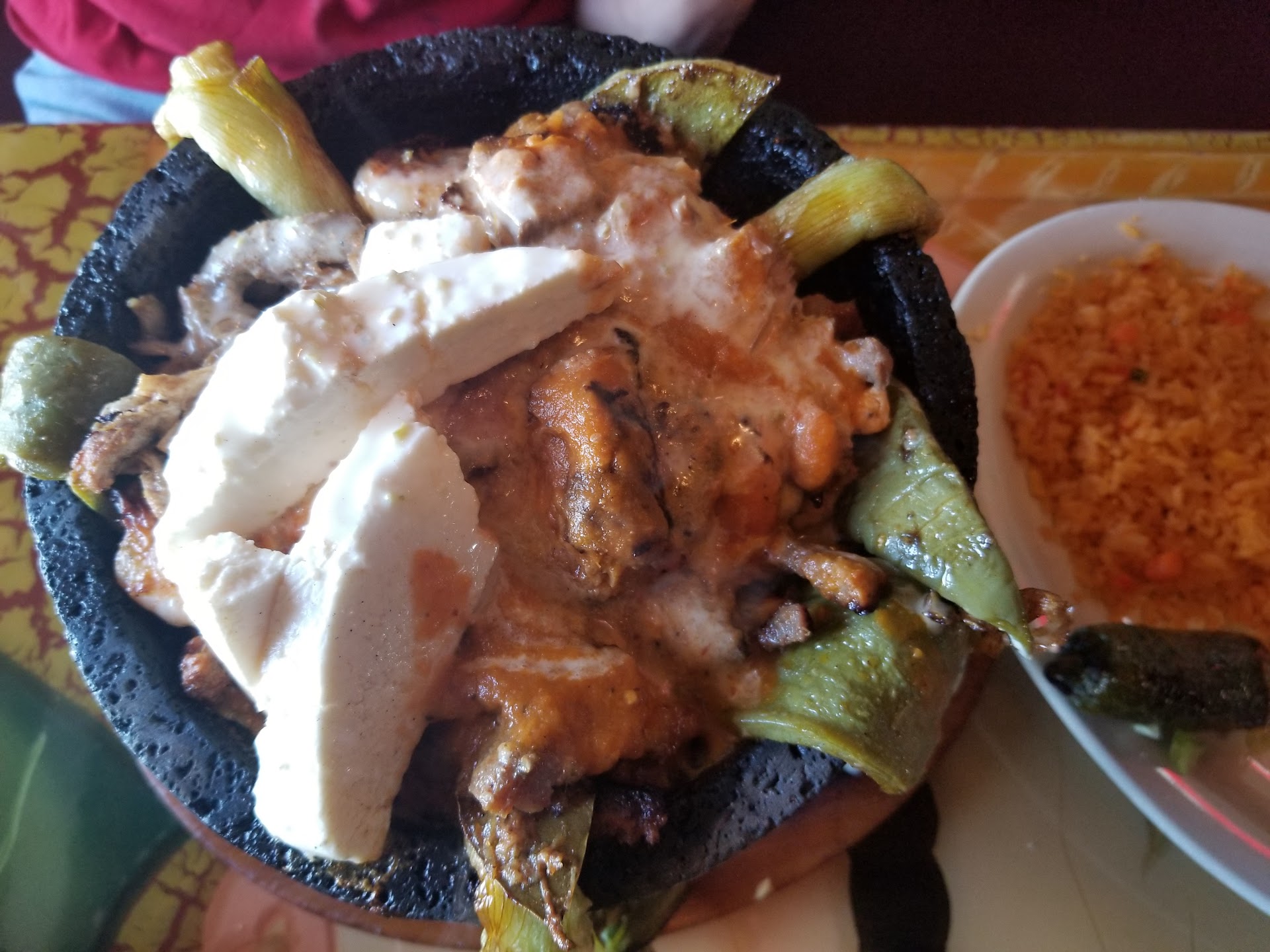 Unfortunately, the only good things I can say about this place is that the service was good and very friendly, the atmosphere was nice, the prices for the food were reasonable (the same can't be said for the drinks), we didn't have to wait long before the food was served, and the portions were big enough. That may seem like a lot of good things, but they were outweighed by the taste, or rather, the tastelessness of the food. It not only was not even the slightest bit spicy, but it tasted and looked like it was completely unseasoned . We couldn't taste any of the traditional seasonings you expect in Mexican food (cumin, garlic, cilantro, etc.) or any other seasoning of any kind. We had to add salt and grab a bottle of hotsauce, but of course, those alone couldn't salvage the food. We finished the meal because it wasn't that the food tasted bad, it just didn't really taste like anything at all. The "salsa" literally tasted and looked like marinara. Then there were tye drinks: my wife ordered a "jumbo" sized "house special" Margherita for $13. The regular size was three dollars cheaper. However, the "jumbo" sized Margherita was an average size, if not a little smaller than average. The taste of the Margherita was good, but...