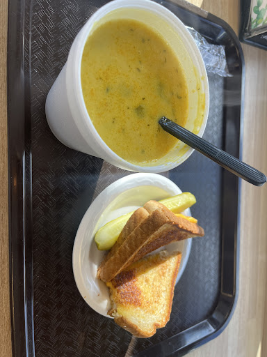 1.) Atmosphere: The place was reminiscent of an old diner which gave homey vibes. Could not be happier with how this place feels 2.) Food: The food was incredible! I’ve heard their sandwiches are good but I just got their signature soup, Chicken Curry, with a grilled cheese, and I must say it was an amazing soup that really lifted my spirit. It felt like it was made with love ya know? 3.) Service: All the staff were so friendly and so kind. They were patient if you didn’t know what you wanted and give GREAT recommendations if you are unsure.