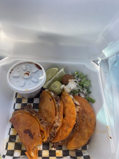 The food truck has a very nice aesthetic look to it which is what made me drawn to trying this place out. I was not disappointed! I tried the queso birria tacos it comes with 4 tacos salsa verde, salsa roja, consume,cilantro, lime,and onions on the side for I believe it was around $11-$12. The meal was very delicious and flavorful my only complaint would be that the salsa comes in tiny bags, I like to drown my food in salsa lol I don’t think this will prevent me from coming back though. Lady that took my order and prepared it was friendly and helpful when I didn’t know what to choose. Please post a picture of your menu on here. I want to plan my...