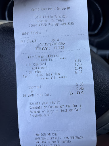 Yall are one of the last Sonics in Houston. We are so sad that the customer service there was just so horrible today. We were trying to order and the young girl kept smacking her lips and huffing everytime she said is that all... ok I get it it's lunch time there's a rush but don't be rude. Then we didn't get a total she just said go to the window. We get there and still no total after we asked for it she just snatched our card đ there is no reason to be that way. We did nothing to this little girl. Geeze I checked my bank and saw the charge for $24 so we wanted to know why 2 meals was so high. We kept asking for a receipt looking her dead in her face asking for the receipt and she just stood there with her mouth open. Finally after damn near crawling in the window and saying excuse me can I get a receipt the manager walks over and the girl went to the back of the store manager kindly explained to use the charges we asked her for a receipt and the girl walks over telling us her whole system is messed up and she can't. How hard was that to say the first time we asked for one and just explain the charges to us. We haven't eaten out in a while we just didn't expect for it to be that high that was all. Now we remember why we don't eat out. People now a days just don't give that customer service like they used to. Or they feel like they don't have to do certain parts of their job. Then the food was cold and the fries were stale. We asked for strawberry limeades but all we got was sprite and a lime. In a wet cup cause she spilled it coming to the counter. Didn't even refill what was lost. Sorry to say I won't be...