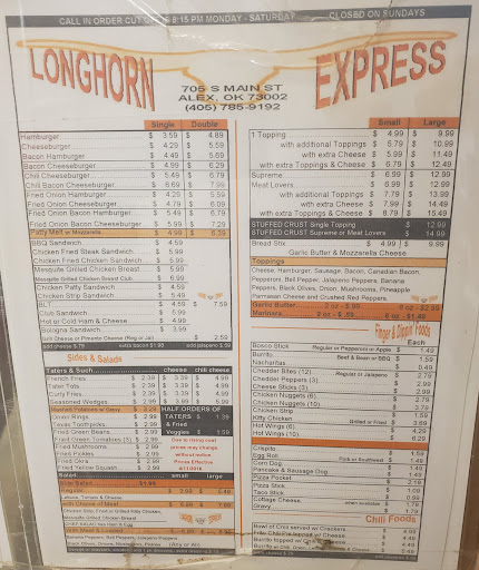 Ā Ā Ā Read moreSharon and I went to Alex to the Longhorn Express for the hamburgers. That was last night Sept. 6th. 2013. Hand made hamburger patties. Nice onion rings. We live in Edmond. They came in and told me I had a flat. The stem had broken. Changed to the spare. Everyone wanted to help but it was easy. Then we headed over to Chickasha to the nearest Dairy Queen for a Blizzard. A pretty...
