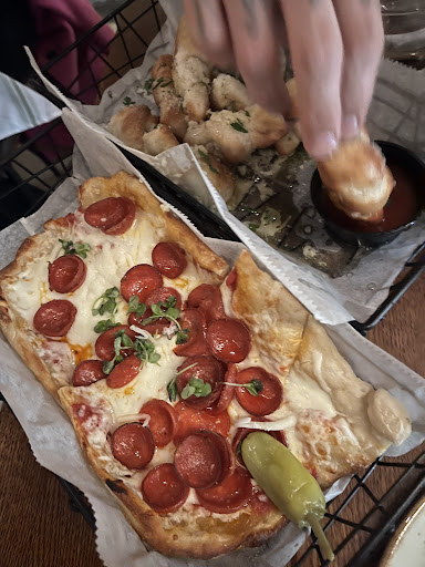 Read moreThe garlic knots are my favorite part of the whole menu! We also ordered the pepzepp because it was highlighted in an instagram reel review and looked tasty but not really worth it for me. Probably great for a picky eater (child) though. It just seemed more like pepperoni smothered in cheese than anything. The sauce is imperceptible which makes sense but me sad. We also got 2 slices: the piece de resistance which was a vegetable slice and the hot honey (not spicy). They were both good but not much flavor dimension. Next time, I would order garlic knots and a few slices. Cool space to be in and service was friendly. Very reasonable price. No reservations are possible so we decided to suck up the long wait time. It turned out to be half the time they quoted - we went to the store and came back with just enough time. In warmer months the long wait time can be used to...