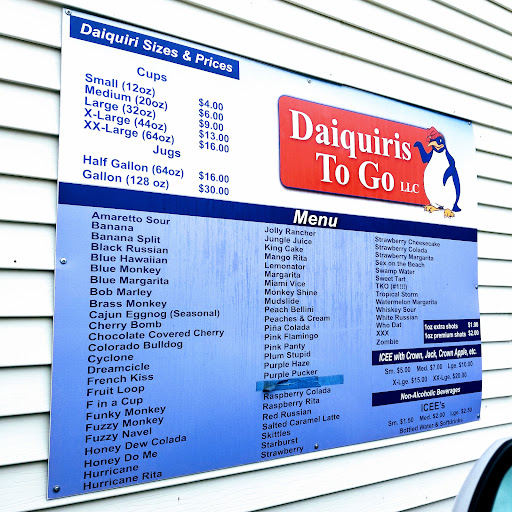 Read moreThis was a very fun place to go as an out of Towner. They have a lot of options and a lot of them seem to be more fun and different than the other daiquiri to go places in the area. They let me have a sample of their TKO which sealed the deal on me getting that with some blue curacao, known as "Swamp Water" The drink was plenty strong as is. Can't imagine adding additional shots. I will definitely come here again before...