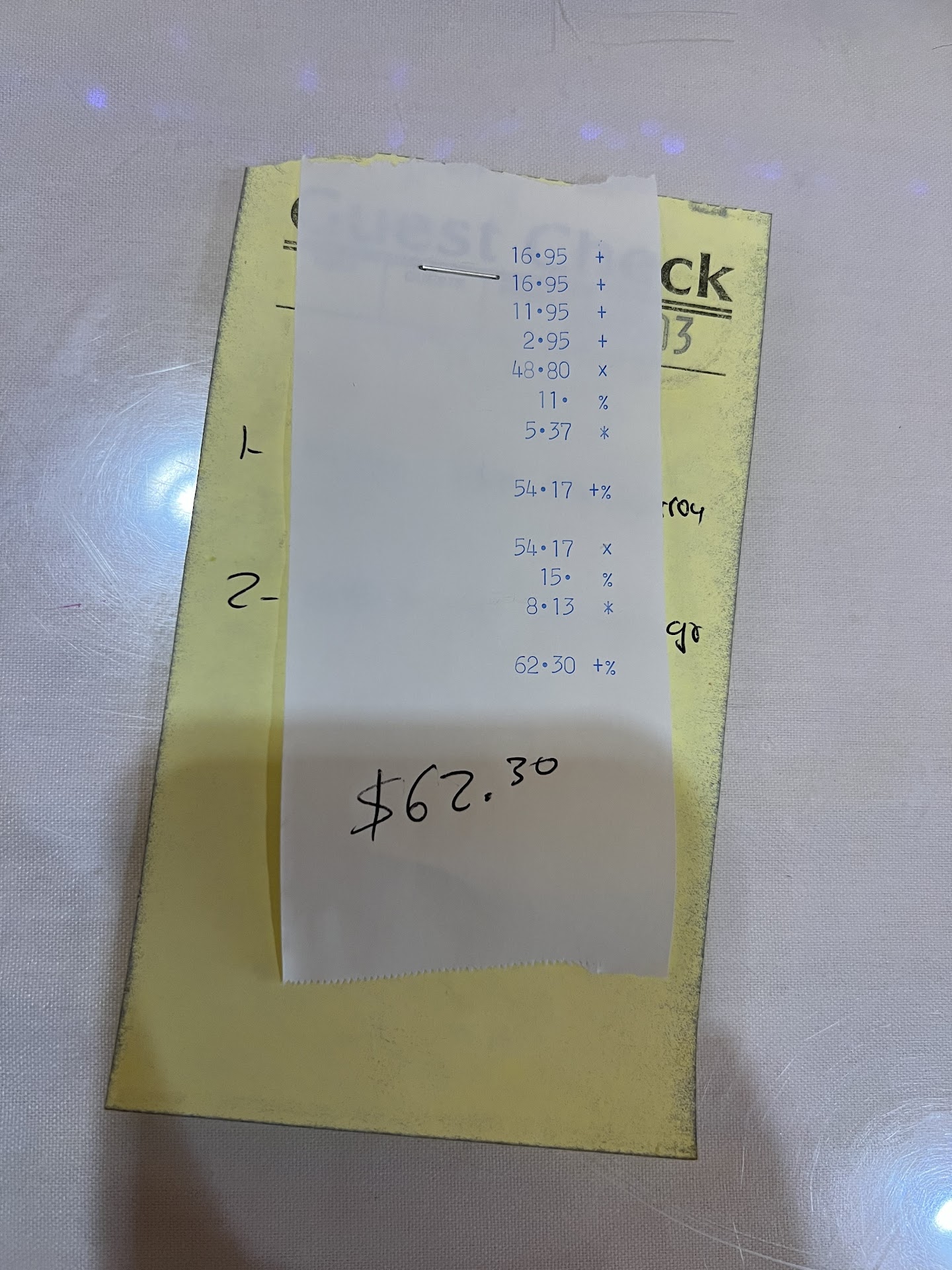 bill fraud āāāāāāā When it came time to pay, we noticed that the bill was much higher than expected. We had ordered items priced at $14 and $18, but the total came to $53. Upon requesting an itemized bill, we found that the prices had been changed from what was initially shown. They claimed the menu we saw was outdated. They refunded $5, but after leaving, I realized that even the corrected total was incorrect and should have been less than $40. Instead, I ended up paying $48, which included an $8 surplus.