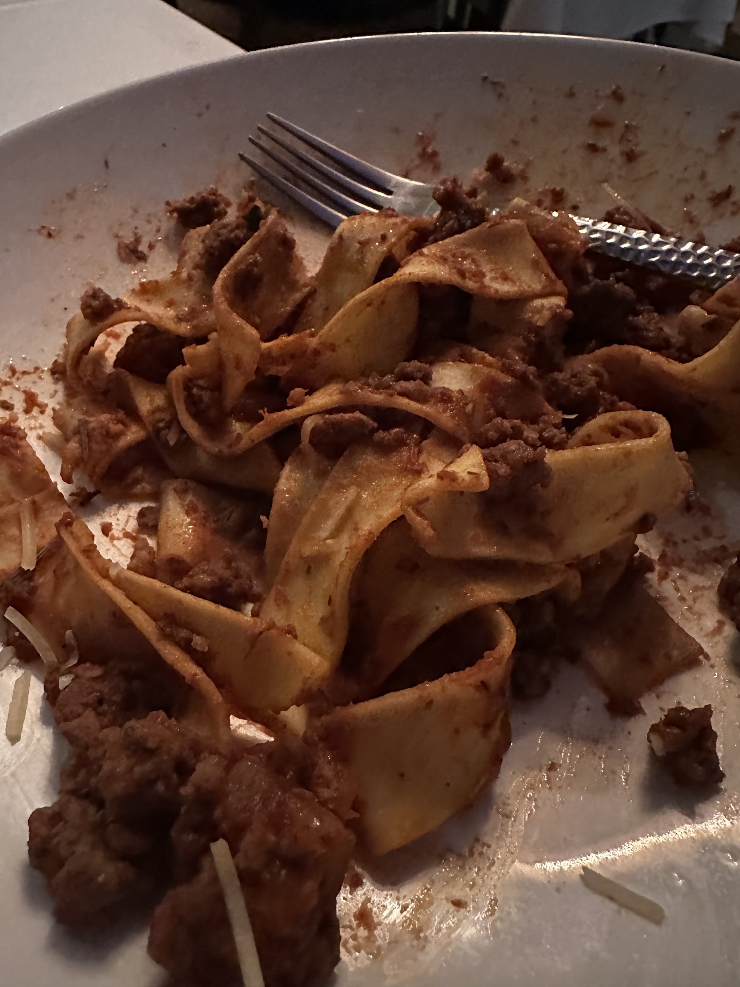 Other entrees at the table: steak and fries, Atlantic cod with risotto (perfectly cooked cod with capers and butter), pasta with bolognese were all hits with our family.