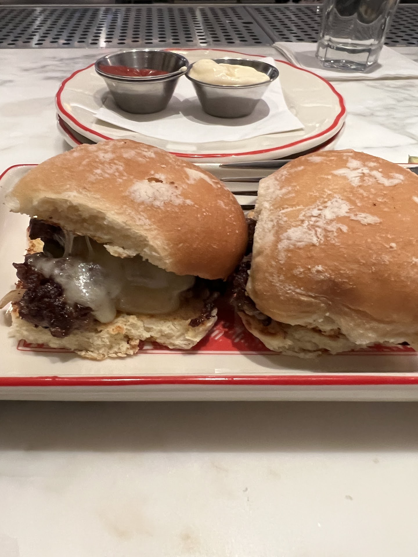 When the food arrived, I thanked the server, but once she walked away, I found myself staring at the plates in disbelief, trying not to ruin the moment for my husband. The steak frites—priced at nearly $30—consisted of three small, tough pieces of meat that didn’t resemble steak in texture or quality. The salad was fresh and well-prepared, and the onion rings were probably the most accurate and enjoyable item we received.