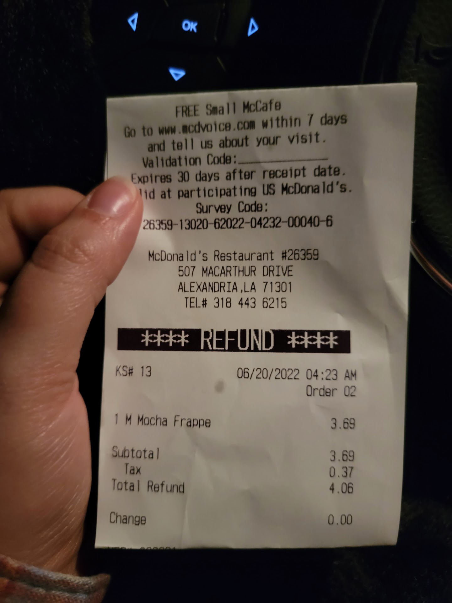 Only getting 5 Stars so it is at the Top AGAIN. This McDonald's is identical to the McDonald's in Pineville, LA. Once again there dining room is not open to eat, I wonder why when the entire State of Louisiana is at 75% Capacity on inside dining per the Governor, & it is Drive Through Only. I again was in Lane #1 & sat there as 4 different vehicles placed their order in Lane #2. I had to pull up to the window & I asked to speak to the Manager. Upon discussing with him what the issue was he explained he had 2 different employees taking orders at each individual Lane. I explained to him that OBVIOUSLY the employee working Lane #1 was not even working taking orders. I even pointed out the lady behind us in Lane #1 was still waiting for someone to take her order. Now I am NOT asking for anything free, but you would expect the Manager to at least discount my order for the inconvenience. Well Nope he charged full price & I didn't complain & I paid the full price. When I pulled up to the window to recieve my order I was asked to pull up. I pulled up & finally my order was brought to me minus a drink. The employee went back in to retrieve the drink & 5 minutes later as I type this I am still waiting for the drink. This is absolutely the WORSE customer service from a Corporation based on Customer Service. This is ABSOLUTELY RIDICULOUS and they want minimum wage to be raised. We'll when you provide good Customer Service I may agree with you. Until then Nope it would not reflect your Level of Work. I will NOT patronize ANY McDonald's EVER AGAIN. Note: The employee finally brought my drink & was very Sincere in...