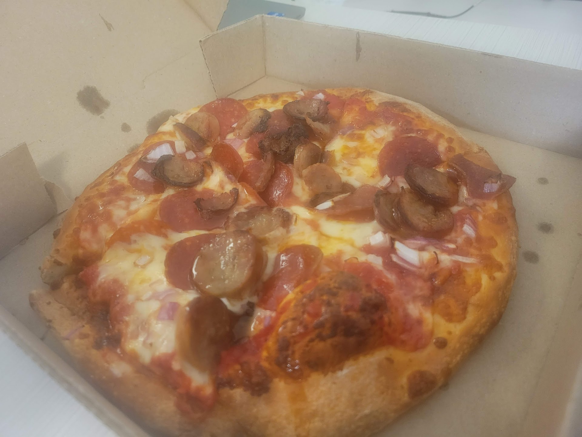 Read moreSave your time and money and don't order from this pizza place! There are tons of other pizza places in the area who prides themselves in making quality, top-tier pizza! I ordered for takeout and the young lady at the cash register was very nonchalant about everything! She didn't hand me a receipt and walked away as I was asking her a question- poor customer service skills! It gets better, as I get home, not too far away, I open the box and it looks like the pizza is thrown together and the crust is so burnt that it didn't even look edible. I can't believe that a business who has been around this long is not doing quality assurance checks on what's being delivered out of this place! I will never be back to this place and I highly advise against it if you're ordering in the area! Pics will be...