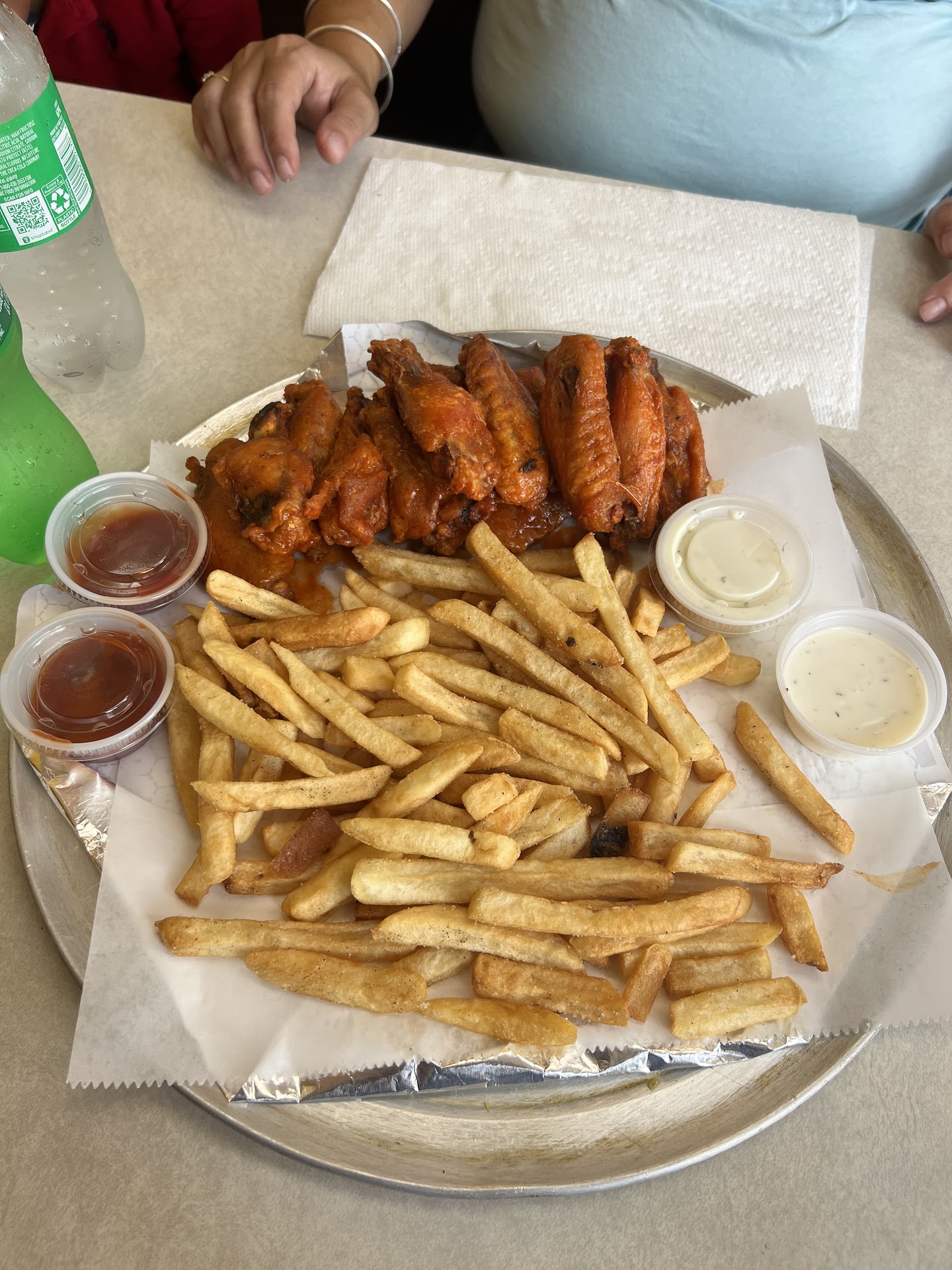 If I could give 0 stars, I would. Waited like 20 mins for 2 wing orders, one garlic parm and one buffalo. Wings were dry, garlic parm wings had no seasoning (plain) and buffalo sauce was watered down and barely applied. Paid 25 dollars, when my fiance asked for a refund they refused and then told her it would be a 30 minute wait. Waited 30 minutes, he came by and said they were fine and literally tore them apart in front of her and told her they were not dry, WHEN THEY WERE. Freshly fried but soggy and dry, how does that work. So he came back and continued to refuse, said he could only refund one order and offered to remake them. Only ended up leaving with 20 dollars out of the 25, that he took from his own wallet because “they have had a lot of refunds recently”. If there is a problem, fix it. As well as that, I got a slice of cheese pizza that they microwaved for so long it became hard. Please do better or...