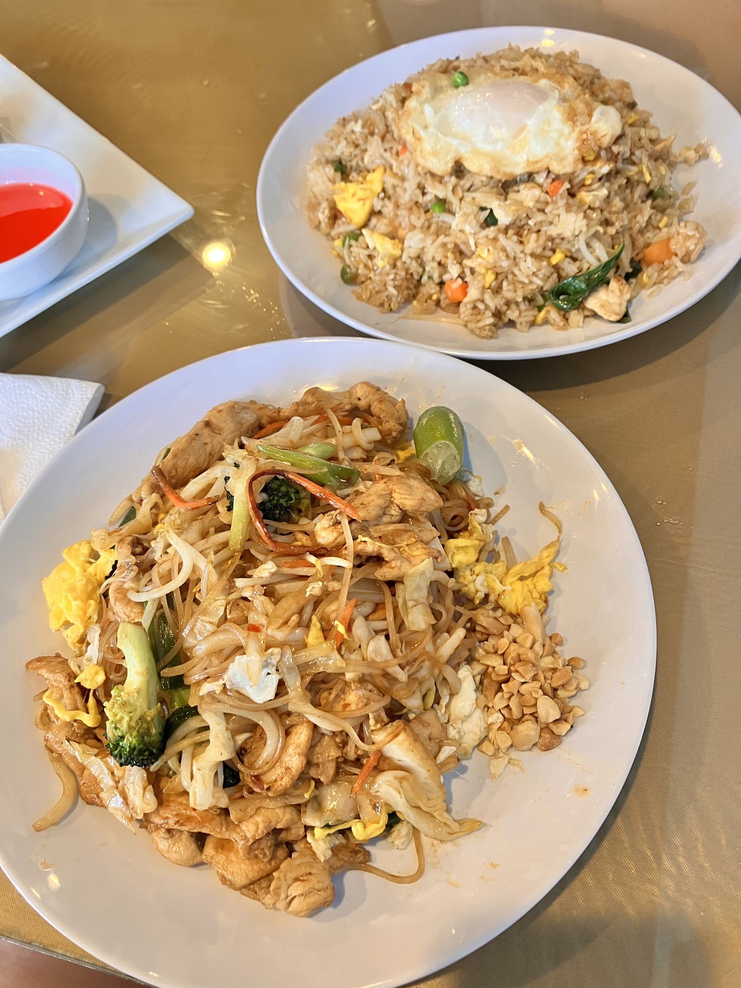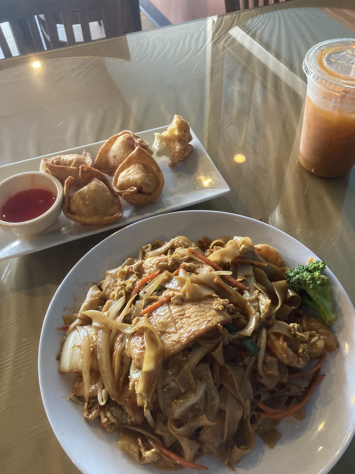 I wanted to try a little of everything, so I got the egg rolls, Pad Thai, Basil Chicken, and Green Curry Shrimp. The egg rolls were thin, crispy, and came with rice noodles and dipping sauce—just how I like them. The Pad Thai was good, but I wish it came with lime wedges and crushed peanuts for that extra texture. Also, the box was a bit small for all the noodles, and they were hard to pull apart by the time I ate. The pictures of online don't match what I got in the to go box so that was disappointing.