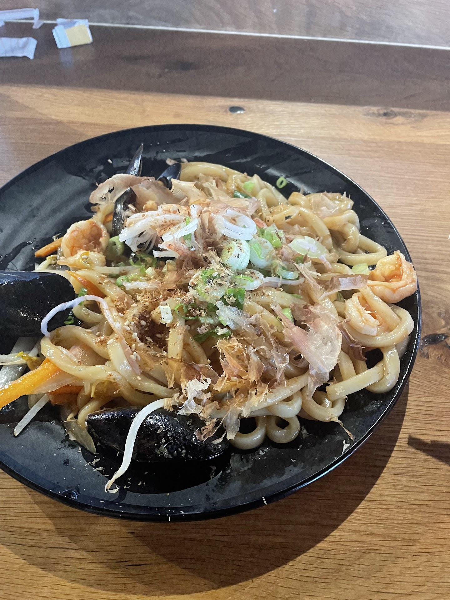 Food was okay. We’re pretty certain that one of us got the wrong ramen bowl. Fiancée said that the boba balls were solid and “not chewy enough”. By no means was the food bad though. I got the seafood plate (pictured) and it was alright. We spent roughly $55 for my plate, her ramen, soda, boba tea, and appetizer. Tip made it $60.