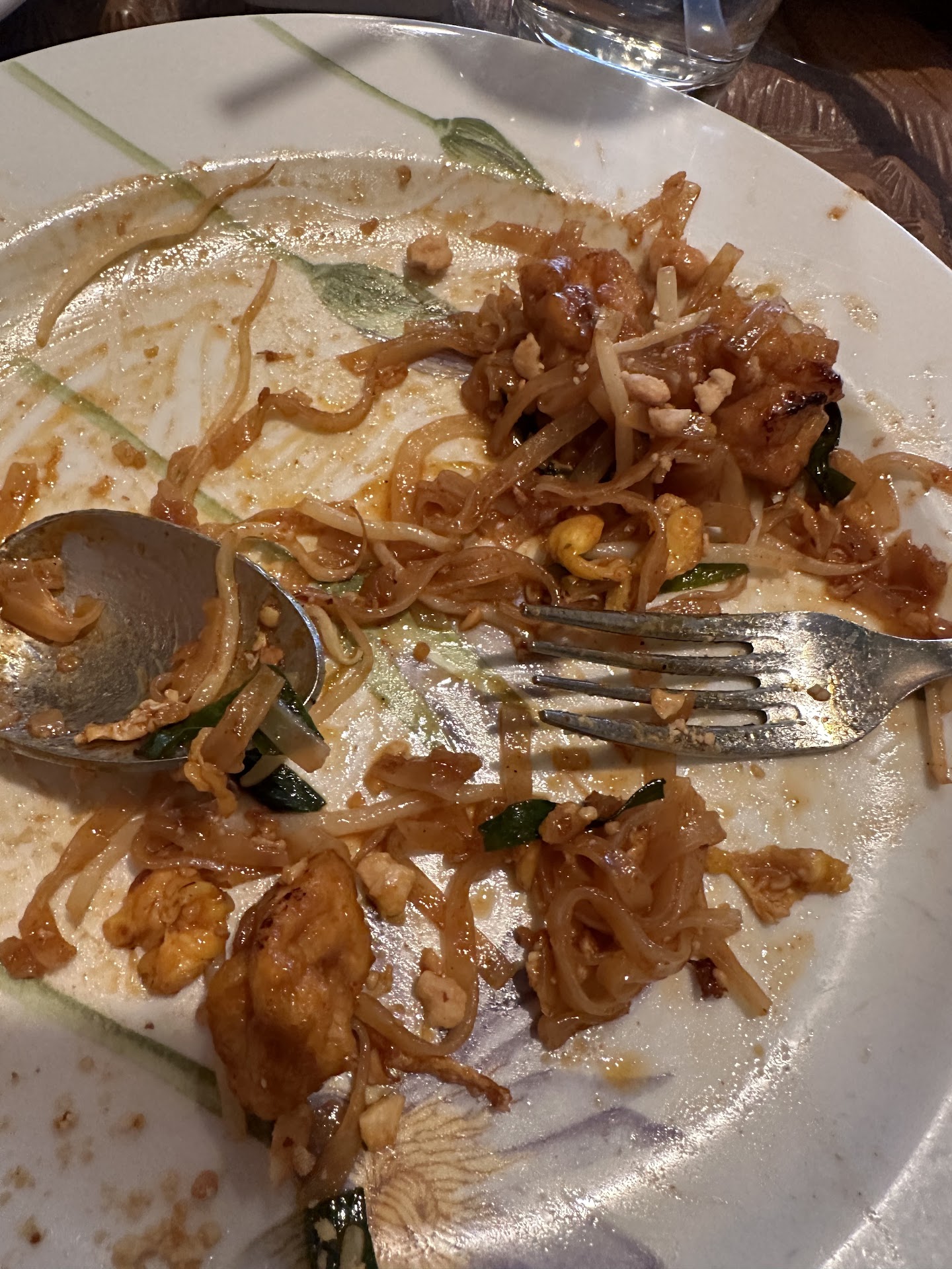 Iâd imagine that its location demands higher rent, which would explain the high cost and small portions. I went there for supper and got the Pad Thai beefâI found it a little sugary. I also got the green curry, which was fantastic, but again, the portion was really, really small, as was the large (in quotation marks) Tom Yum soup.