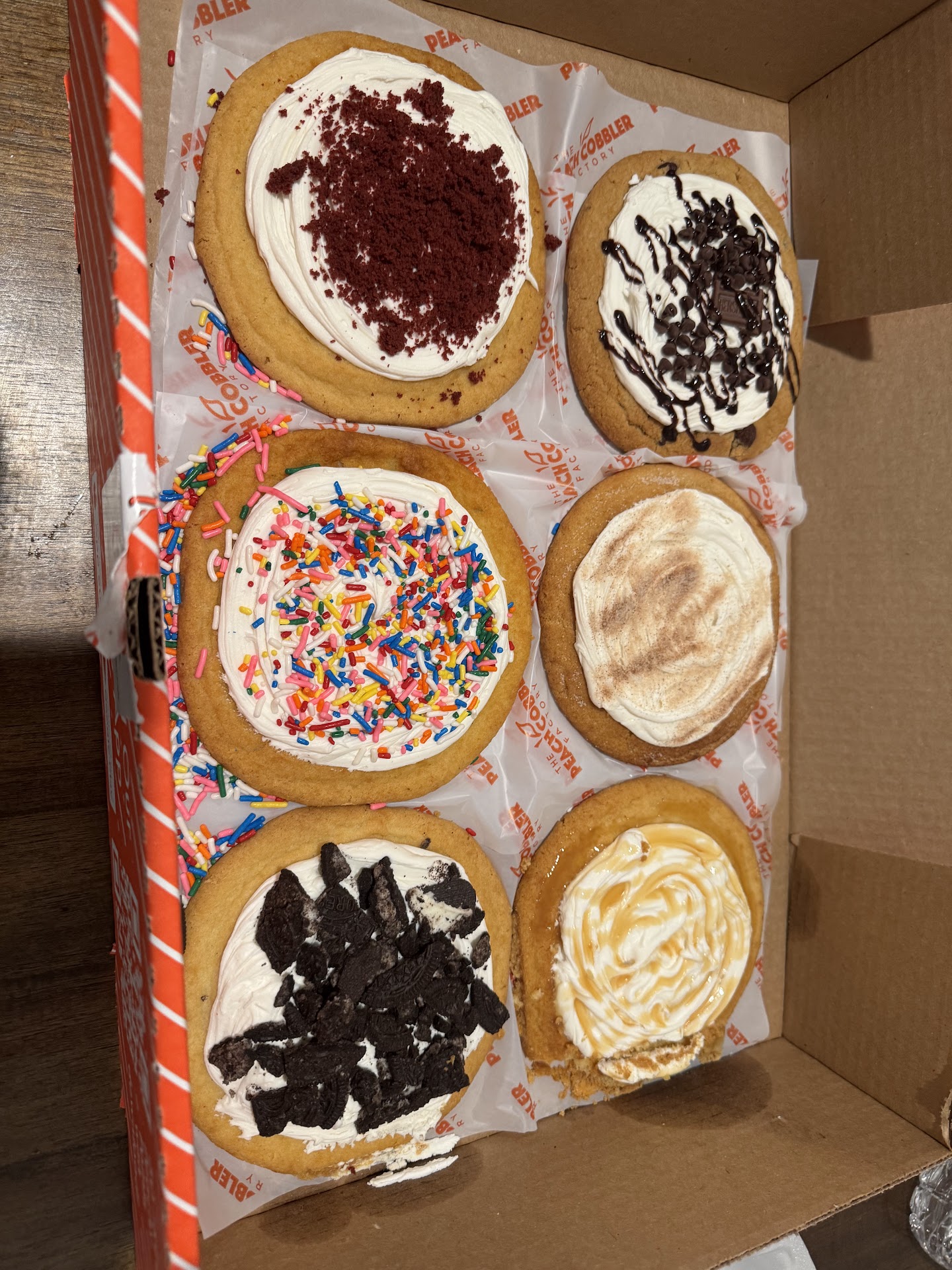 I wasn’t crazy about what I ordered. Looked really good, but the flavors were not hitting the way I needed them to. Still good, but I wasn’t blown away by it. However, I do want to go back and try something else. The cookies looked amazing. Crumbl cookies have some competition. I did take a bite of my friend’s peach cobbler and it was good. It’s was your...