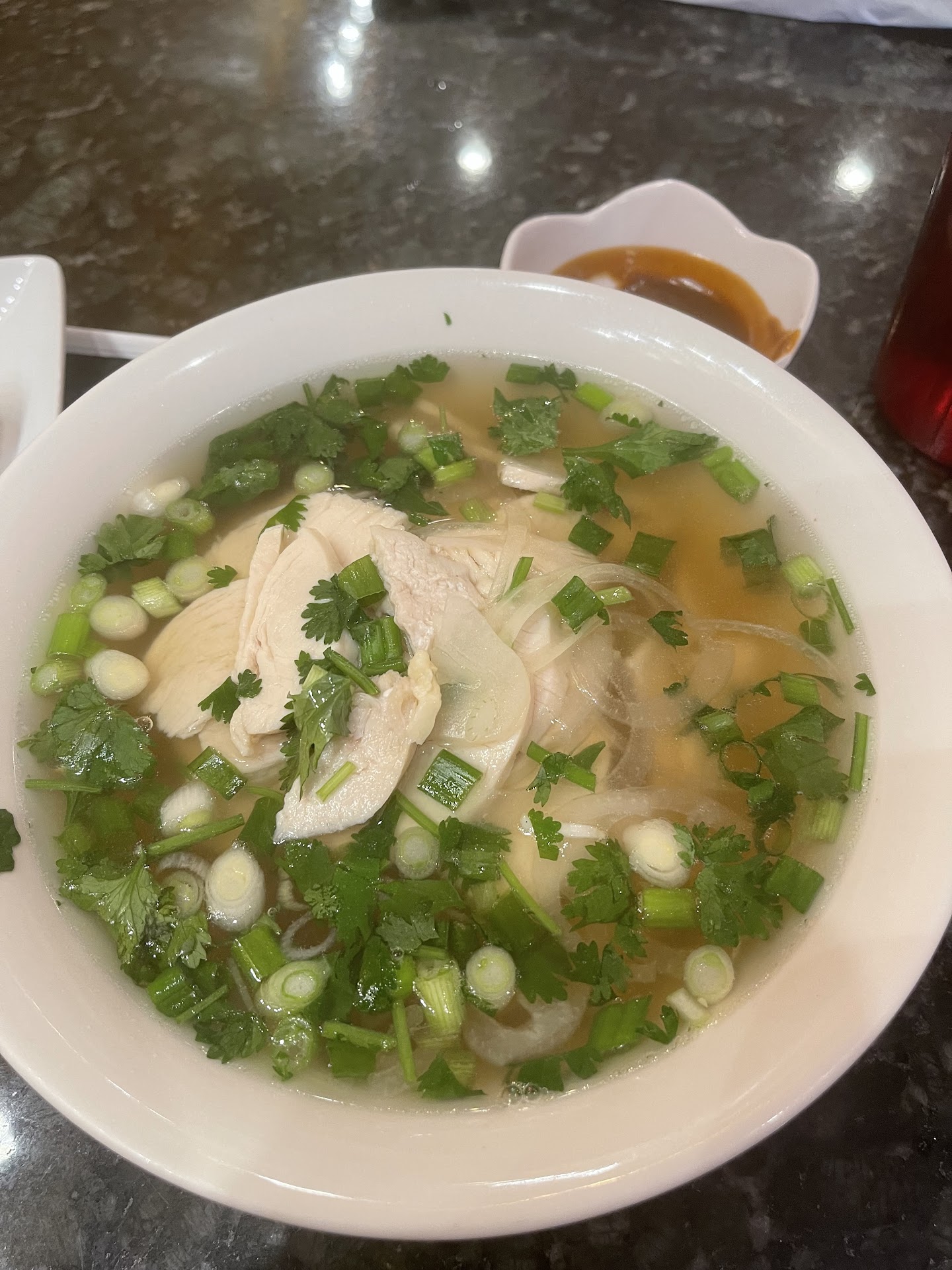 Before going there tonight we read the reviews and some mentioned that the broth was too weak or not as tasty. The broth is perfect, because good Pho should have a light broth, that's also not dark (bouillon cube) at all.