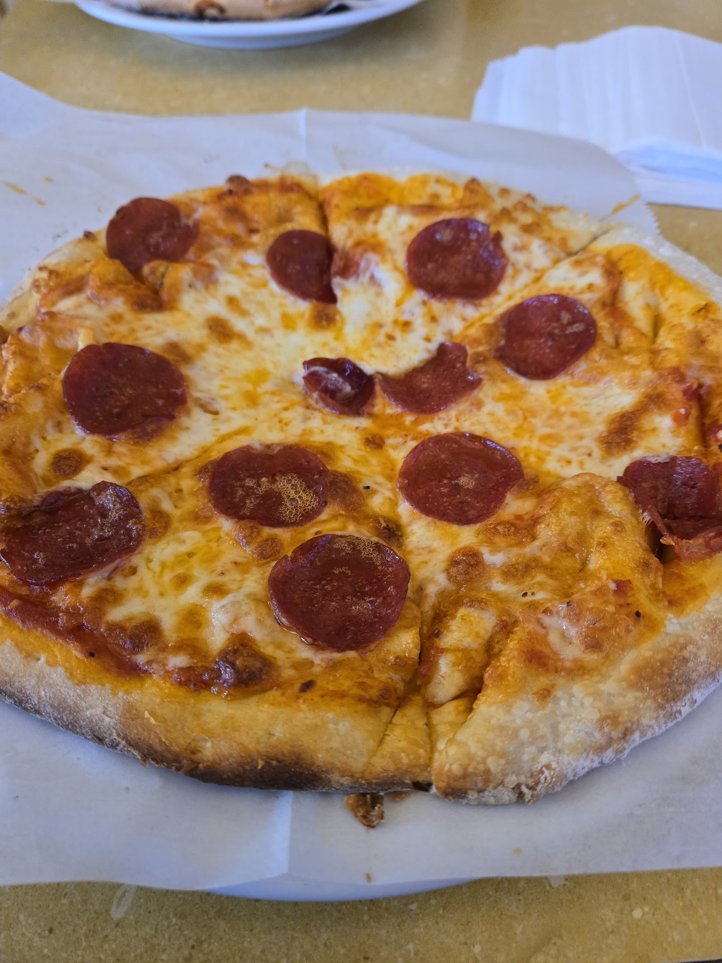 Read moreI had been here once before years ago and based on that I set a low bar. However, the pizza was better than I expected and improved over my last visit. I ordered a personal pizza this time rather than slices so it was fresh and that may have been the difference or could be just different experiences on different visits. NY style pizza, and it was that, no droop in the crust, the amount of cheese and distribution was correct and the cheese was not overly greasy or oily. The sauce was also ok, not too sweet or acidic. The amount of ingredients was also appropriate , see photo. I had pepperoni although I would have taken a bit more on mine. My buddy had 1/2 cheese, 1/2 sausage and the sausage on his was more and had good coverage. I gave it a 6.1 grade and my buddy gave it a 7.8 so some disparity on those. He liked his, and NY style is his jam. I like NY style also, and I liked it, but didn't feel like it offered anything amazing from a flavor or quality standpoint. Still a solid basic option though. We were the first people of the day. Ceiling lights near the counter were on but all kitchen and dining lights were off and remained off while we were there. He also asked that we pay with the cash rather than with a credit card when I went to pay. Odd request, and a bit of a turn off for me but we obliged and paid cash. No parking, but there are paid garages and paid street parking nearby. Order and pickup at the counter and bus your own table. The place has a cafeteria look and feel to it. All in all, a good basic pie and...
