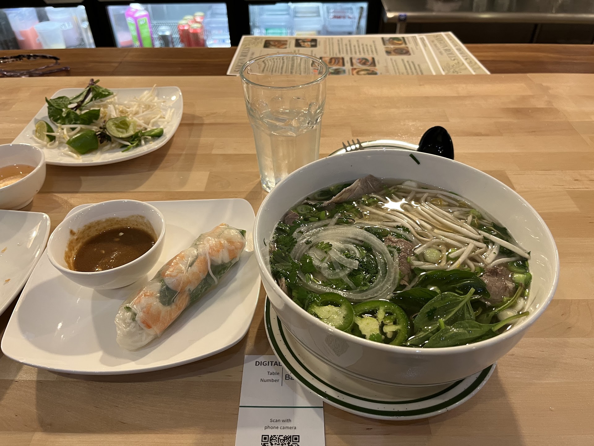 For the main event, we went with the pho with well‑done beef, and also tried the pho with well‑done beef & tendon. The broth was incredibly rich and comforting, deeply flavorful and so satisfying. The beef was tender even though it was well-done, and the addition of tendon brought a tender, melt-in-your-mouth texture that I loved--it made for a memorable introduction to pho!