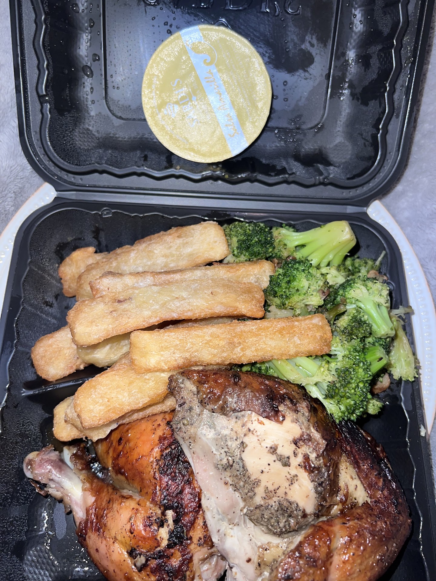 When I arrived, I was assisted by two male staff membersāone was handling the chicken, and the other was serving the sides. I politely asked if they could put the rice and beans in a separate container so they wouldnāt get mixed with the chicken. The man immediately said no. I asked again, nicely, and instead of helping, they spoke to each other in a dismissive tone and gave me a very small portion of rice and beans in a tiny white plastic containerāsomething more suited for a dipping sauce or a child's side, definitely not for a regular meal.