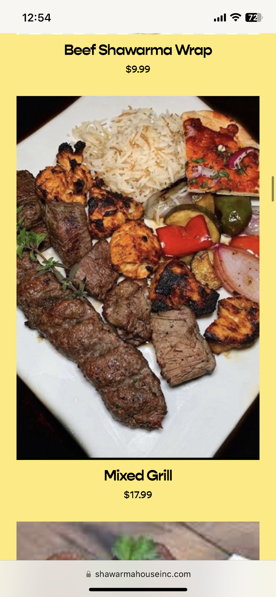 Buyer beware. I purchased two mixed grill meals from this vendor. I was charged a total of $45.71. When I asked for a receipt for the purchase I was informed that he had no paper to print me one. I went to his website curious as to how it could be so much. There I found the mixed grill to be $17.99. So if I purchased two of these meals that would be $35.98. Add to that a generous 10% for taxes $39.58 at most. When I brought it to the vendor's attention he said that the price was special for the online purchases through Uber Eats. That made no sense to me because Uber Eats takes a cut from the vendor so wouldn't you want to charge higher online as opposed to in person? That being said, I went home and brought the meals to share with my wife. When I opened it I immediately noticed the discrepancy between the advertised number of chicken pieces along with beef pieces associated with the mixed grill. At that point, I realized I had a duty to report this guy to my credit card company and also leave him a review that will hopefully teach him the value of doing honest business. I don't normally post reviews but he fired me up with the way he blatantly lied to me when inquiring about the price discrepancy, lack of paper for a receipt, and further atrocious over cooked meager pieces of chicken and meat that were provided. Definitely don't recommend purchasing any food from this vendor. Hopefully he changes his business practices as the internet provides a medium to keep them honest. I run a company myself and recognize how much trust between the company and customer is paramount to grow a business and keep it running...