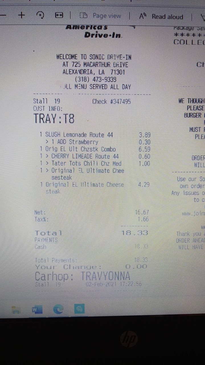 This food has turned me off from continuing to eat at any Sonic, much less this one. The only good take away from this "dining experience" was the staff was polite and they got our daughter's food order...