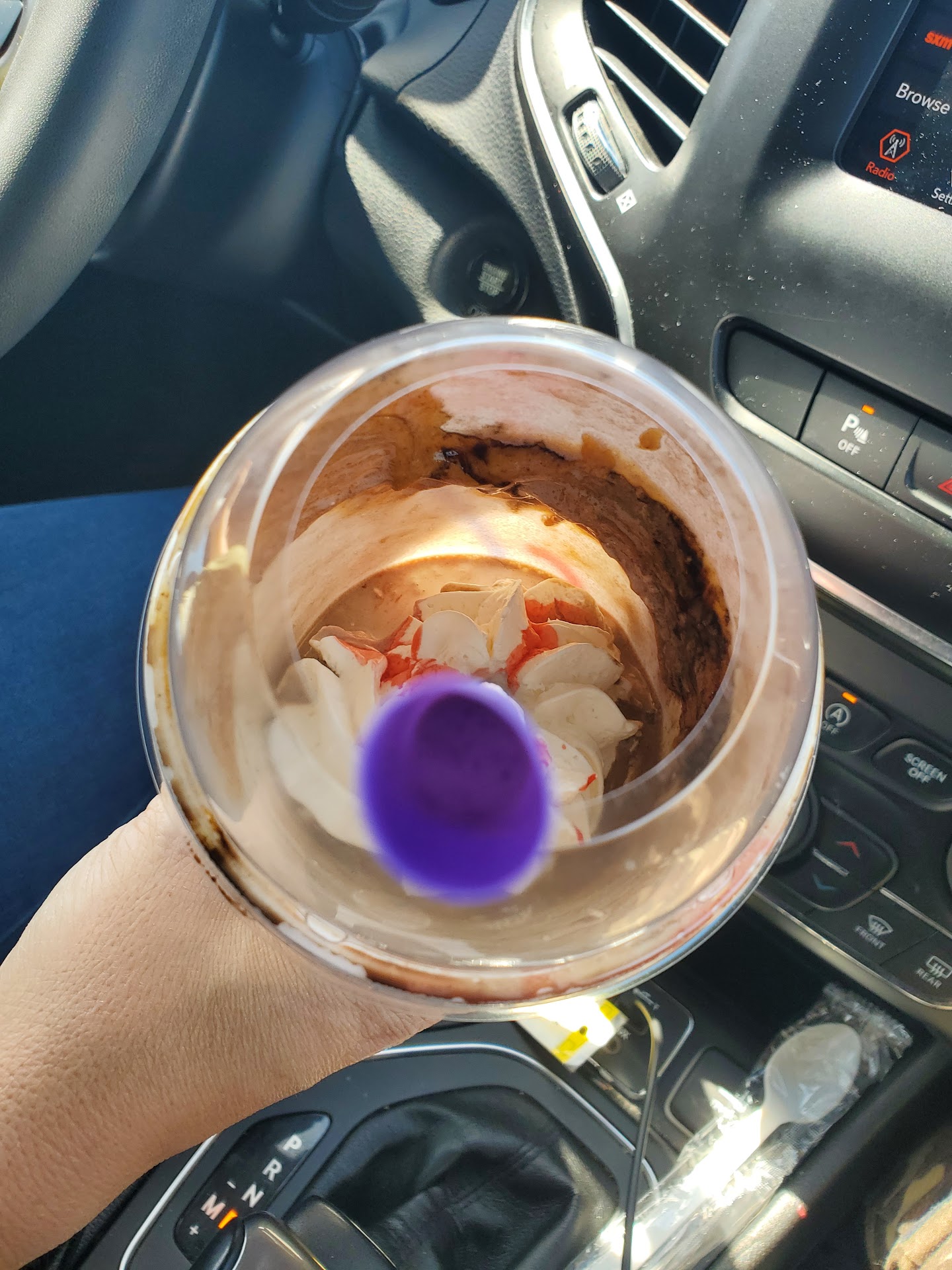 So, instead of the hassle of driving back, we both decide to eat what was given. It was nowhere near hot, and are now, not even sure if it was thoroughly cooked. The tater tots were old and hard and had no salt, and now we're both feeling sick to our stomachs.