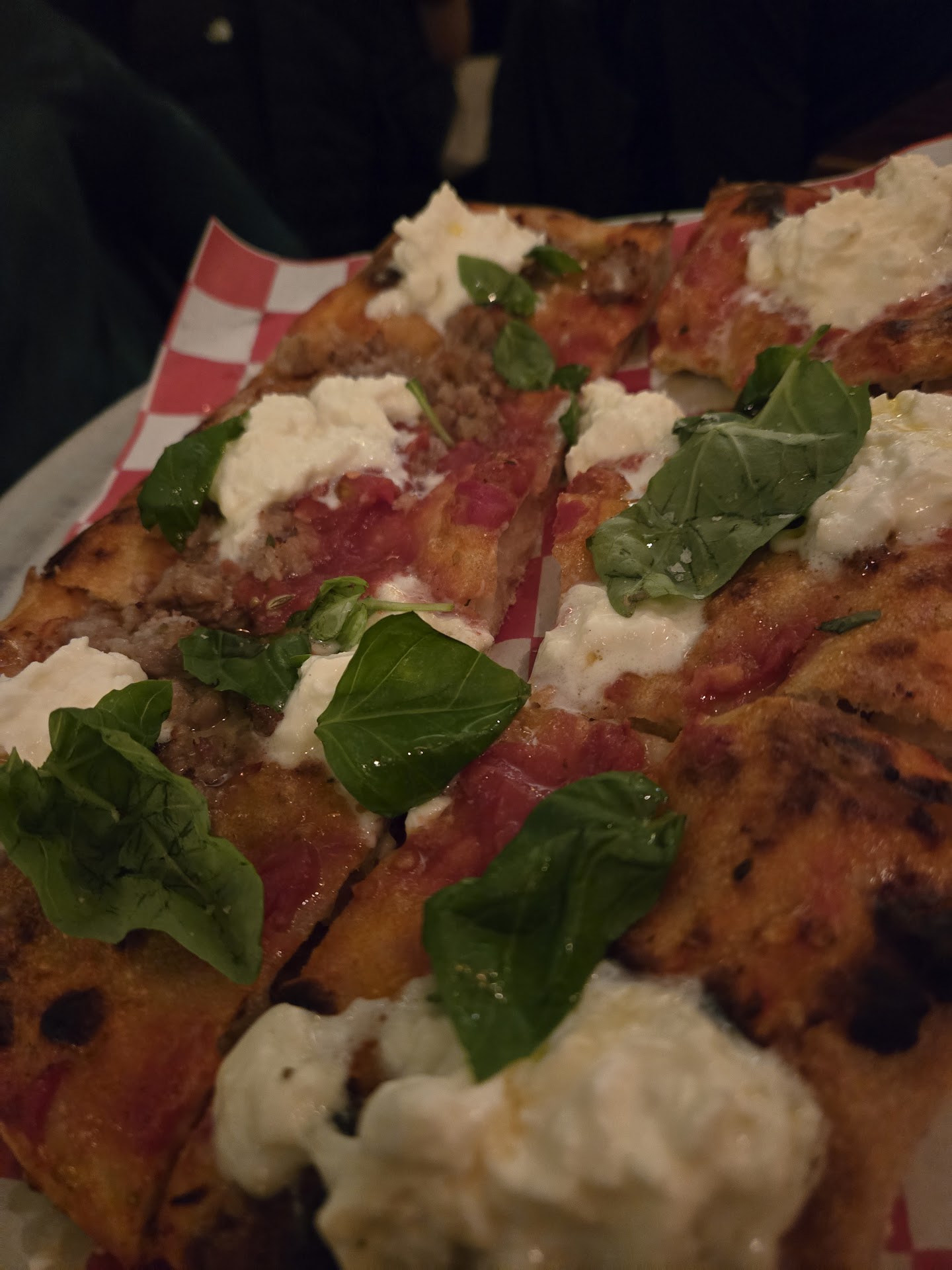 The good. The pizza is damn good! I was expecting something heavier and more doughy like an almost Detroit Style pizza, it's not even the same. Lighter, flakier crust, not doughy, not rubbery and no flop on the crust at all and a great flavor. Ticked the boxes for both me and my buddy who both love pizza but slightly different criteria. For a pizza review I normally do only pepperoni but because the likelihood of me getting back here is slim due to the hours, I did Pepperoni and Sausage and also went in for the Stracciatella cheese. I wasn't sure about the cheese but it's their thing and I am now on board with it. My buddy had a 1/2 cheese only and 1/2 sausage, his normal review pizza. We both give high marks, he 8.2 and me an 8.5. I am not a fan of acidic sauce, this one great, up to snuff, savory and smooth. Toppings tasted good quality and amounts were proportional and on the money. Cut in squares, no flop in the crust makes it easy to eat by hand, no fork and knife needed. Very crispy crust on mine, slightly less crispy on my buddies, but both were very good. We had drinks and the Rosemary Focaccia while we waited for our table and all was delicious. Get the focaccia with the oil dip for sure. I like a little salt splashed on the oil but there was none to be found. For dessert, chocolate gelato which was a 2 small scoops in a cool little bowl, also delicious. Well worth the trip and the food is amazing. We had Highball drinks which were excellent.