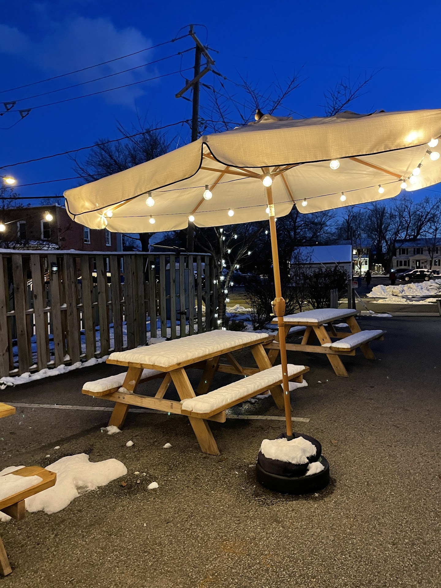 The atmosphere is social, intimate, and welcoming. This allows for a great date night, gathering with a group for business or socializing. During the colder months, the restaurant place space heaters by the outside seating and standing tables to make being outside comfortable.