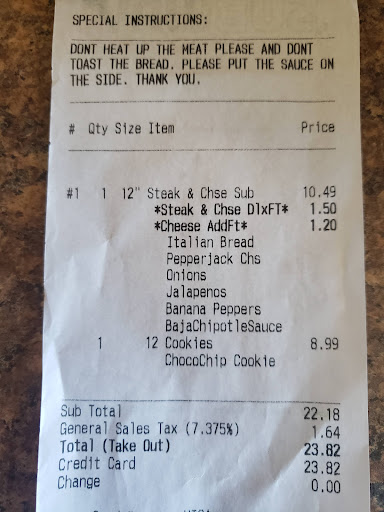 Read moreI wish i spell correct his name Gabe, this guy is amazing, i m a truck driver made an online order, and wanted to make sure order ready i called some lady answered it i know she could be bussy but she confirmed its ready and when i arrived food doesnt, but i figured out that if you making inline order and giving late pick up system jot sending it to the store to avoid prepare earlier than its time you decided because order needs to be make it fresh, so it wasnt store or lady picked phone fault, maybe mine but i also wasnt know this proccess, but how some Gabe this guy is the man helped me out and made all order ready in 6 minutes maybe less, and my order was a lot, this gentlemen needs to be manager in some other subway or any other restaurant, thanks again Gabe and all other crew, god bless you guys and almost forgot, thnx for the cookies he gave me 4-5 of them for free for honoring customer, this is the way how you solve problems at work, i might like subway more because of this gentlemen represented his job bery welll...