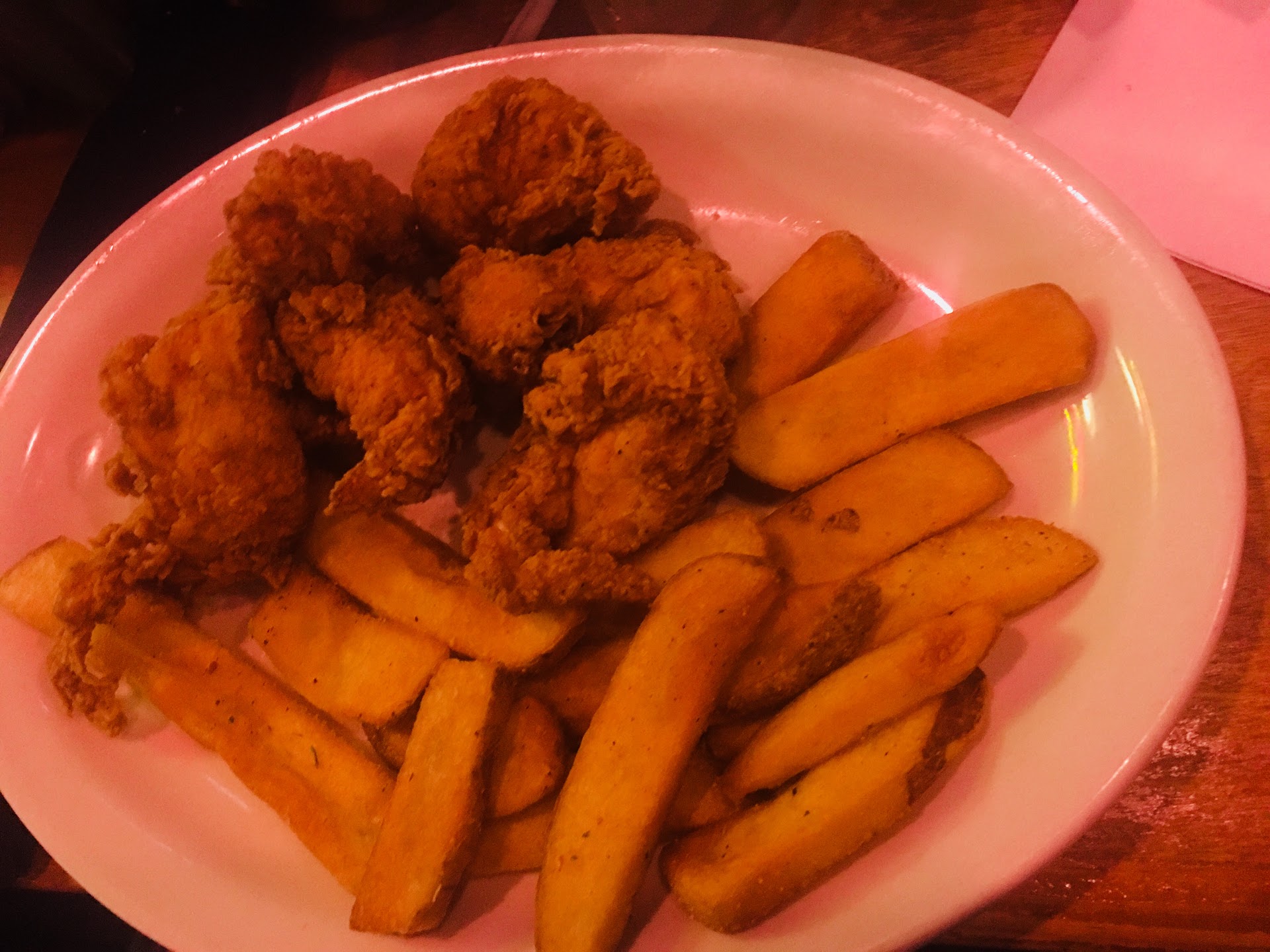 —Overall the food and visit was good. Good deals and prices. We had a group of 9 people eating so I cant vouch for everyones food. I had a burger and fries, the fries were good, the burger not so much. I asked for a medium well patty and got an extra well-done patty instead. It was extremely salty as well. My wife had Chicken strips and fries, she says that they were nothing to brag about, they were ok. My 3 kids had the kids mini- cheeseburgers and says that they were good. We have been here to eat several times and typically the food is decent, sometimes we get food that seems to be cooked by an amateur chef. Our waitress was great, very polite and helpful. I can deal with my burger not being cooked properly simply because there are a lot of chefs that do not know how to cook meats correctly or time manage a cook. Overall I give it 👍. Oh.. Turn the music down a couple of clicks. Its hard to have a...