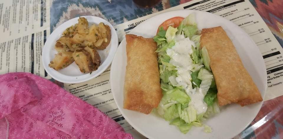 The chicken and sausage gumbo: MMMM!!!! THE creamy shrimp soup: Oh yeah!!!!! The 🍅 and basil pie is A MUST-ORDER!!! WOW!!!!! 💋 THE CHEF FOR THIS ONE! Amazingly great spinach salad, too!!! Grilled chicken with potatoes and other fixings--YOU WILL BE ELATED with delight to order this, too. Strawberry crepe--order more than one!