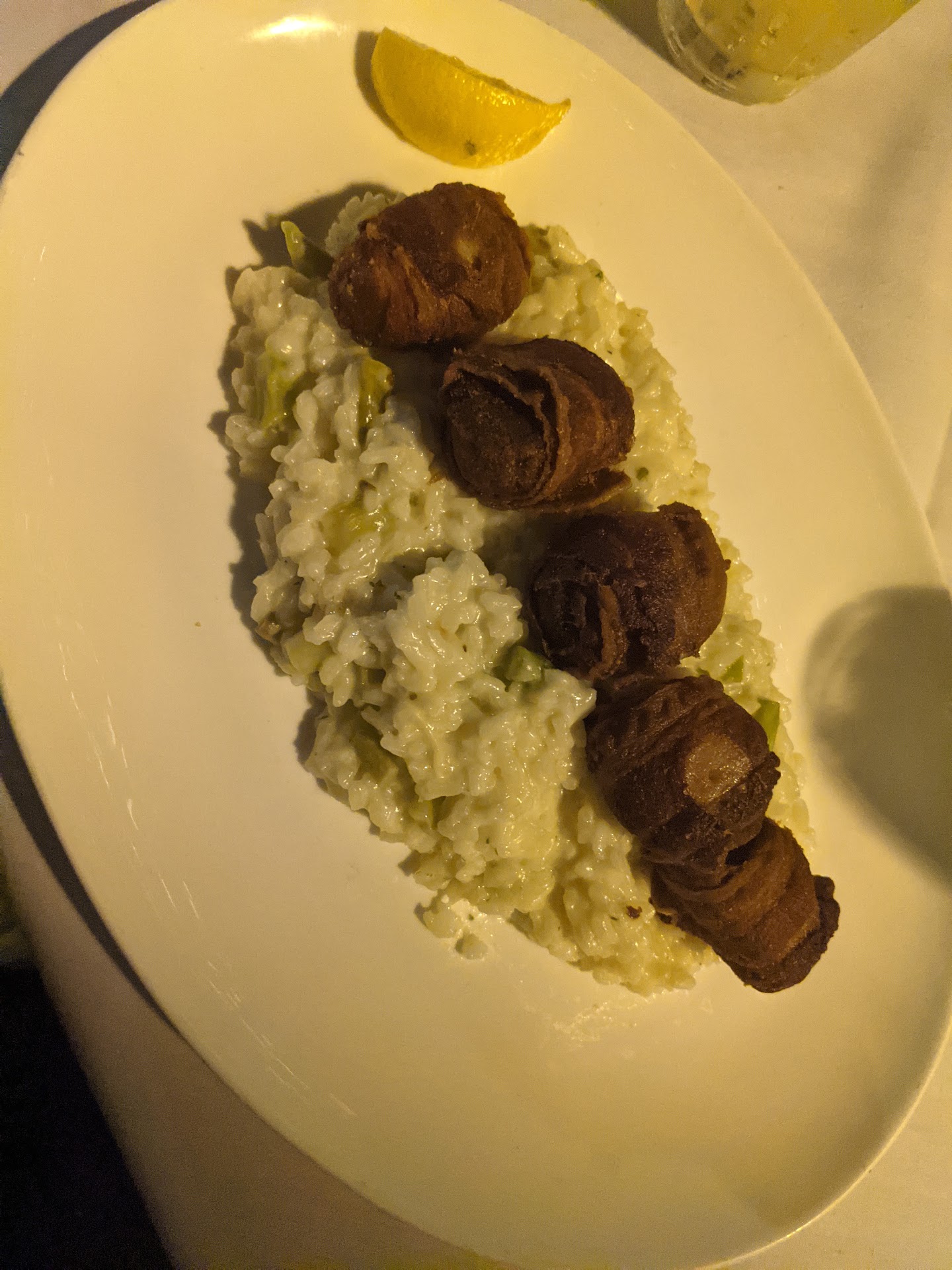 When that one came and I cut into the flounder I noticed the crab inside had a creamy look. Again I asked the waiter if there was any dairy or egg there, and their response was "no, that's the crab cake" which didn't really make sense to me because typically crab cake contains egg as a binder. But since they assured me there was none and my partner tasted it and thought there wasn't any, I ate the dish.