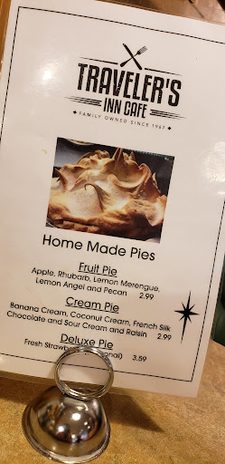 Read moreThe epitome of small town diners. Pop's Diner from Riverdale has nothing on our Travelers. They serve breakfast all day. That means that you can walk in during normal dining hours and get three pancakes as big as your head at 7 o' clock at night. If that isn't magic I don't what is. They have the absolute best Lemon Angel Pie, the most scrumptious omelets, and stunningly good hash browns. If you think that this place is like Perkins, then you would be wrong because it has 100% more character, and you're supporting a local business. I can honestly think of no better backdrop to sunny summer afternoons downtown than Travelers. When I put five stars on here I really and deeply truly mean it, as I have never come across nor will come across a diner as yummy, nostalgia-inducing, or utterly ours than Travelers. Going to Traveler's is a genuine treat and I already miss it even though it's not gone. Traveler's, you have really done...