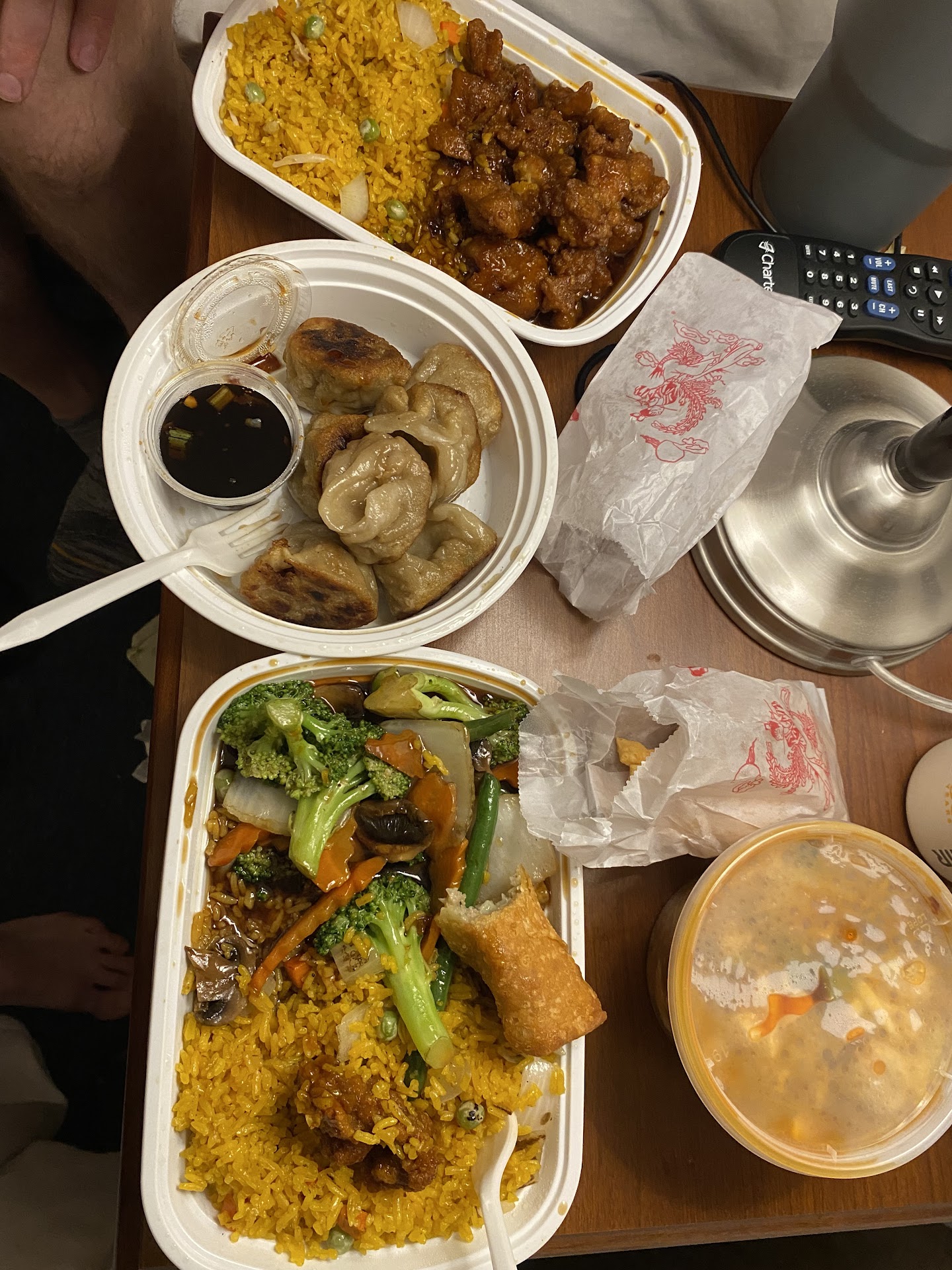 it was all very good. the general tso chicken was the perfect balance of flavor—i honestly don’t find that often with the dish. the brown sauce that is in the vegetable with chicken fried rice is so savory and delicious and with variety of vegetables. egg rolls were crispy, tasty, and perfect size. pork dumplings are very generous size and filling. my only dislike was the hot and sour soup as it just had too much chili flake in every bite. perhaps this was an error, as these things happen from time to time. i was so disappointed because it had that delicious classic h&s soup flavor otherwise and packed with mushroom, bamboo, tofu etc.