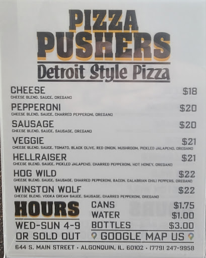 Read moreI ordered Pizza Pushers on a whim one night, having found them when searching for pizza near Lake In The Hills. The reviews and photos convinced me to call. When I arrived, it was just before my order was ready. The staff was friendly and welcoming, and offered their recommendation for taking the pizza home uncut. (They advised the closest thing to getting to eat it in the restaurant would be to pop it in the oven for a bit, then cut it just before eating.)